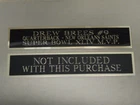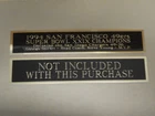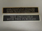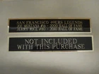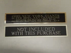 THIS PURCHASE IS FOR THE NAMEPLATE ONLY !!!!!!! BOBBY'S HANG-UPS PREMIUM QUALITY ACRYLIC DISPLAY CASES AND CUSTOM ENGRAVED NAMEPLATES SINCE 1999 THESE NAMEPLATES ARE GREAT FOR DISPLAY CASES, FRAMED AND MATTED PHOTOS AND JERSEYS, SHADOW BOXES, PLAQUES, ETC. WE SPECIALIZE IN CUSTOM ORDERS OF ALL NAMEPLATES. WHETHER IT'S FOOTBALL, BASEBALL, BASKETBALL, HOCKEY, GOLF, BOXING OR ANY PERSONALIZED NAMEPLATE THAT YOU MAY NEED. WE CAN MAKE JUST ABOUT ANY NAMEPLATE THAT YOU ARE LOOKING FOR. OUR NAMEPLATES ARE TRIPLE ENGRAVED TO GUARANTEE CRISP, READABLE TEXT. NAMEPLATES ARE HAND POLISHED BEFORE SHIPPED TO MAKE SURE THE ENGRAVING REALLY STANDS OUT. ALL NAMEPLATES HAVE HIGH QUALITY DOUBLE SIDED TAPE TO ENSURE IT WILL STAY IN PLACE. CLICK HERE AND GO VISIT OUR EBAY STORE FOR MORE GREAT ACRYLIC DISPLAY CASES AND ENGRAVED NAMEPLATES !!!! PLEASE CHECK OUT OUR EBAY STORE, AND CHECK OUT ALL OF OUR ACRYLIC DISPLAY CASES AND NAMEPLATES. IF YOU DON'T SEE THE NAMEPLATE YOU ARE LOOKING FOR OR IF YOU ARE LOOKING TO PLACE A CUSTOM ORDER, PLEASE FEEL FREE TO EMAIL US AND WE WILL GET WORKING ON YOUR ORDER RIGHT AWAY. THANK YOU! THIS PURCHASE IS FOR A SUPER BOWL 35 NAMEPLATE. IT IS BLACK ON BRASS BACKED ON POLISHED GOLD PLATING. THE NAMEPLATE MEASURES APPROX 1.5" X 6" IN TOTAL WITH ENGRAVED TEXT THAT READS: 2000 BALTIMORE RAVENS SUPER BOWL XXXV CHAMPIONS Defeated the New York Giants 34-7 Brian Billick ~ Head Coach, Ray Lewis ~ M.V.P. IF YOU ARE PURCHASING DIFFERENT TEAM OR PLAYER NAMEPLATES, AND DIFFERENT SIZES AT THE SAME TIME, PLEASE USE THE SHOPPING CART FEATURE AND PLEASE REQUEST A TOTAL BEFORE MAKING PAYMENT TO ENSURE YOU GET THE PROPER COMBINED SHIPPING DISCOUNT. Be sure to add me to your favorites list !