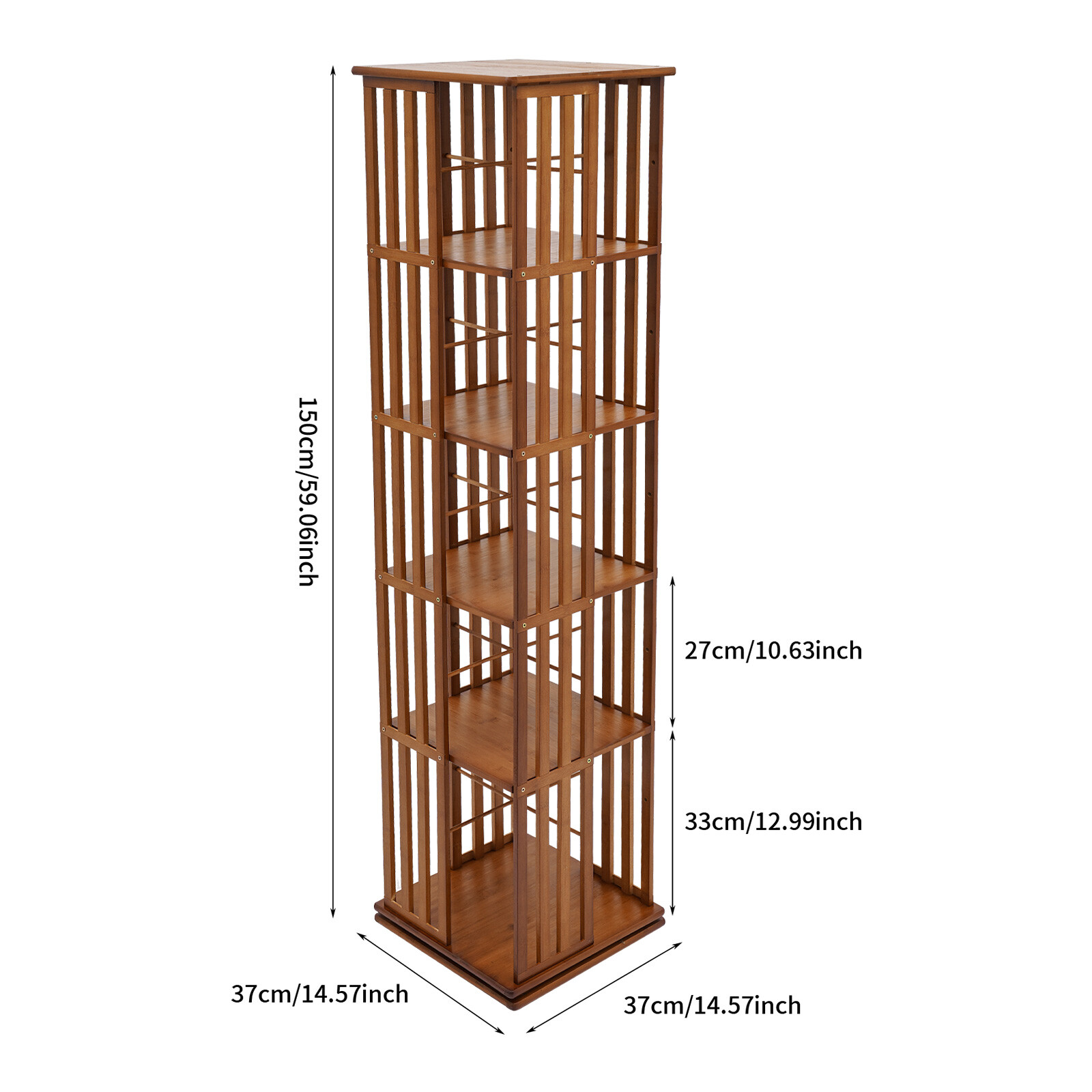 Specification Color: Tan Style: Modern Shape: Rectangular Number of Tiers: 5 Process: Painting Material: Bamboo, Silicone, Stainless Steel, Density Board Assembly Required: Yes Mount Type: Floor-Mounted Each Tier Max. Load-Bearing Capacity: Approx. 12.5kg/27.56lbs Interlayer Spacing: 33cm/12.99in(Bottom Tier), 27cm/10.63in Product Size: 37*37*150cm/14.57*14.57*59.06in Package Size: 153*38.8*6.7cm/60.24*15.28*2.64in Gross Weight: 10.86kg/23.94lbs Net Weight: 10kg/22.05lbs Package Included 1 * Rotatable Bookshelf 1 * Chinese Manual Other Accessories for Assembly Bamboo Rotating Bookshelf 5 Tiers Open Shelving Magazine Storage Display Rack Key Features Great Durability: The product is mainly made of high-quality bamboo and density board by painting, which is safe, non-toxic, aging-resistant, not easy to deform, and has a long service life. Neat Storage: It adopts 5 tiers of storage space that allows you to place different books or items in different positions, and you can also place small potted plants on the top platform for decoration, making the room tidy. Easy to Access: The rotatable design and semi-open structure improve search efficiency and allow for easy access to your books. Excellent Load-Bearing Capacity: The thickened boards and stable structure give this product a load-bearing capacity of approximately 27.56 pounds per tier, ensuring stability during use. Flexible Use: You can choose the number of tiers to assemble, or disassemble the book stoppers on each tier according to the size of the stored items or books, making it more flexible and personalized to use. High Space Utilization: With the 14.57*14.57-inch footprint and multi-tier design, it can fully utilize corner space and increase space utilization. Elegant Appearance: The natural color scheme and simple shape make this product look very elegant and classical, making it not only a practical storage assistant but also an embellishment for home decoration. Easy Clean-Up : The surface of the product is smooth and the structure is simple. You can easily use a soft cloth to wipe it clean. Details Silicone Foot Pads: They can make the product more stable to place and prevent the floor from being scratched. Smooth Edges: The smooth edges enhance the beauty of the product and better care for your skin when installing, using, and cleaning it Application This product can be widely used in study rooms, bedrooms, living rooms, balconies, offices, kindergartens, daycare centers, bookstores, and other places. It can be used to store books, family photos, toys, CDs, decorations, handicrafts, and other items. Specification Color: Tan Style: Modern Shape: Rectangular Number of Tiers: 5 Process: Painting Material: Bamboo, Silicone, Stainless Steel, Density Board Assembly Required: Yes Mount Type: Floor-Mounted Each Tier Max. Load-Bearing Capacity: Approx. 12.5kg/27.56lbs Interlayer Spacing: 33cm/12.99in(Bottom Tier), 27cm/10.63in Product Size: 37*37*150cm/14.57*14.57*59.06in Package Size: 153*38.8*6.7cm/60.24*15.28*2.64in Gross Weight: 10.86kg/23.94lbs Net Weight: 10kg/22.05lbs Package Included 1 * Rotatable Bookshelf 1 * Chinese Manual Other Accessories for Assembly Notes Please carefully check the product size before purchasing. Please allow the slight color difference caused by the shooting light and 1-3cm error due to manual measurement, and make sure you do not mind before ordering. Payment Delivery details Terms of sales About us Contact us Payment We accept ebay payment 。 Fees such as import duties, taxes are not included in the item price or shipping costs. These charges are the buyer's responsibility. Delivery details Shipping: 2-9 working days to: USA Terms of sales We maintain high standards of excellence and strive for hundred percent customer satisfaction. Feedback is very important to us. We hope that you contact us immediately before you give neutral or negative feedback, so that we can address your concerns. It is impossible to address issues if we do not know about them! About us Your satis faction is our ultimate goal. We work hard to earn your trust and future business. Our certified technicians have tested each item before shipping. The unit comes with 1 year limited warranty on all manufacturing defects. a) If you receive a defective item, you may return it or ask for a discount. Please contact us within 14 days after you receive the package. b) What you returned must be intact and in its original packaging as re? u. Customer is responsible for shipping costs of the returned item. c) We will cover the cost of shipping back t with the shipping rate indicated in the registration page. We will send you a new unit or refund the full payment you paid. Thank you. Contact us Business Hour Business Hour: Monday To Friday: 8:30 AM to 5:00 PM (Beijing China time) Due to time zones, our reply to your questions may not be immediately. But within above working time, we will reply your email within 24 hours. If it's non-workdays, please kindly be patient and wait till Monday. Please contact us with ebay message. Please feel free to contact us if you have any questions. Monday To Friday: 8:30 AM to 5:00 PM (Beijing China time) Due to time zones, our reply to your questions may not be immediately. But within above working time, we will reply your email within 24 hours. If it's non-workdays, please kindly be patient and wait till Monday. Please contact us with ebay message. Please feel free to contact us if you have any questions. Please Note Shipment within one working day Brand Unbranded Item Height 59.06in Item Length 14.57in Item Width 14.57in Type Bookshelf Color Tan Style Modern Number of Tiers 5 Process Painting Material Bamboo, Silicone, Stainless Steel, Density Board Assembly Required Yes Mount Type Floor-Mounted Each Tier Max. Load-Bearing Capacity Approx. 12.5kg/27.56lbs Interlayer Spacing 33cm/12.99in(Bottom Tier), 27cm/10.63in Product Size 37*37*150cm/14.57*14.57*59.06in Number of Shelves 5 On Aug 3, 2025 at 23:02:41 P
