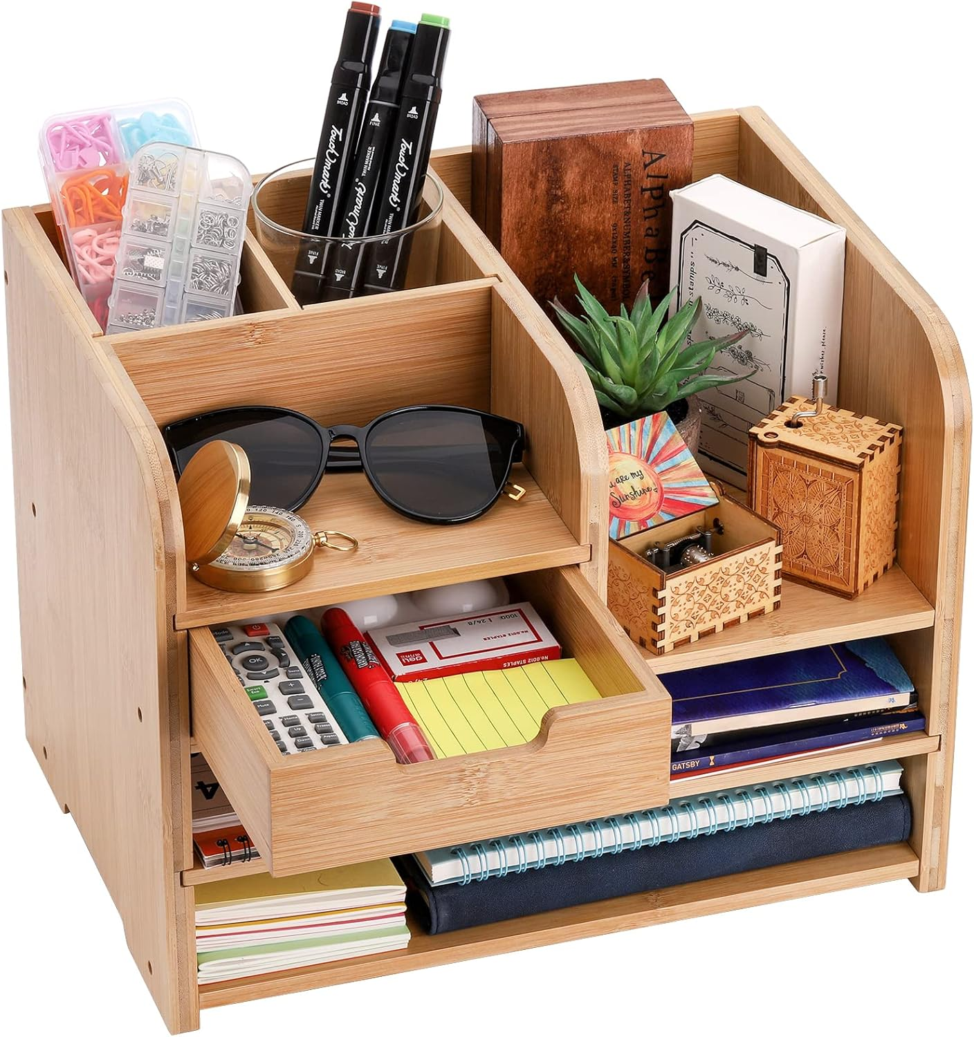 Store New Arrivals Add to Favorite View Feedback Contact Bamboo Desktop Organizer with Drawer, 3 Tier Wooden Desk File Document Organizer with Pen Holder, Tabletop Stationery Storage Organizer Storage Rack for Desk Accessories, Office Supplies Description Item model number Bamboo Desktop Organizer Part Number Bamboo Desktop Organizer Batteries Required? No Finish Bamboo,Polished Number of Items 1 Color Natural Finish Type Bamboo,Polished Product Dimensions 9.3"D x 13.3"W x 10.25"H Material Bamboo Wood Country of Origin China Mounting Type Tabletop Mount Item Weight 8 Pounds Maximum Weight Recommendation 10 Pounds Specific Uses For Product Stationery Item Weight 8 pounds Shape Rectangular Batteries Included? No Number of Compartments 6 Unit Count 1.0 Count Special Features Space Saving Special Feature Space Saving Package Details: You will receive a bamboo desk organizer with drawer, measuring 13.3"L x 9.3"W x 10.25"H. A variety of storage compartments make it easy to organize your desktop stationery or everyday essentials Upgrade Sturdy Structure: Our desk organizers is made of solid natural quality bamboo with a polished surface that is flat and smooth. Stable frame structure make the organizer solid and long-lasting, not easy to crack or deform Multifunctional Desk Organizer: This bamboo desk organizer has many storage area, you can store magazines, sticky notes, paper clips, staples, scissors, pens, pencils, business cards, notepads and other small desktop items Space Saving Organizer: This bamboo desktop organizers and storage has 3-tiers large storage capacity. Not only bamboo desktop organizers with drawer can help you sort and store your things very well, but also It can help you save space on the desktop, so can make your desktop much more organized Easy to Assemble & Clean: We provide clear instruction and required accessories to shorten installation time and you can easily assemble it by yourself. The surface of the bamboo desktop organizer is polished and smooth, which is convenient to clean and maintain, simply wipe it down with damp cloth Product Description You will receive a bamboo desk organizer with drawer, measuring 13.3"L x 9.3"W x 10.25"H. A variety of storage compartments make it easy to organize your desktop stationery or everyday essentials. Multifunctional Desk Organizer This bamboo desk organizer has many storage area, you can store magazines, sticky notes, paper clips, staples, scissors, pens, pencils, business cards, notepads and other small desktop items. Upgrade Sturdy Structure Our desk organizers is made of solid natural quality bamboo with a polished surface that is flat and smooth. Stable frame structure make the organizer solid and long-lasting, not easy to crack or deform. Space Saving Organizer This bamboo desktop organizers and storage has 3-tiers large storage capacity. Not only bamboo desktop organizers with drawer can help you sort and store your things very well, but also It can help you save space on the desktop, so can make your desktop much more organized. ABOUT US We offer the best prices around on high quality products. Our E-store includes media such as books, movies, music and games while offering electronics, toys, sporting apparel, clothing, tools, general home, garden items and more. SHIPPING We are always working hard to ensure your package arrives as soon as possible. Please understand that some factors like weather, high postal traffic, and the performance of shipping companies are outside of our control. We offer free shipping to the lower 48 states and ship within 2 business days of payment, usually sooner. We do not accept P.O. Boxes. Please provide a physical address. For shipping outside of the continental USA, we only use eBay's Global Shipping Program.The item is shipped to KY and then sent to the rest of the world. International customers are responsible for all duties and taxes. Continue to check out in order to calculate costs for shipping the item to your country. Messages regarding eBay's Global Shipping Program MUST be directed at eBay EXCLUSIVELY. RETURNS We offer a 30-Day Return Policy on items which you are not completely satisfied with. You have the option for a full-refund or an exchange of the item. No returns are available on items shipped outside of the USA. PAYMENT We accept PayPal. CONTACT US This page content is yet to come Please ad us to your favorite seller and visit again later Thank You CUSTOMER SATISFACTION We try our very best to make sure every customer is completely satisfied. If there's a problem, message us! We're happy to help. WE ACCEPT Copyright © 2021 AutoDS. | All Rights Reserved