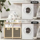 Keep your home organized and clutter-free with the Laundry Basket — a beautifully designed, eco-friendly hamper that simplifies your laundry process while enhancing your home's aesthetic! Our tilt out laundry hamper cabinet is made from that not only withstands daily use but also complements your space with its natural hue. Unlike other laundry cabinets that have only basket, ours has ! This means more space for you to sort all your clothes. Use for light-colored fabrics and the other for dark ones. Each section has its own colored fabric basket, keeping your clothes out of sight and helping you achieve a tidy laundry area. We understand how frustrating it is to rummage through cabinets for fabric softeners or detergents, so we've equipped our pull out hamper cabinet with top shelves. These shelves are perfect for organizing your laundry essentials, like detergents and softeners, keeping them within easy reach. But that's not all — you can also use these bathroom shelves to towels, linens, and even decorative items like your favorite plants, making your laundry area both functional and stylish. To set it up, simply the instructions we've provided, and you'll be organizing in no time. Experience the difference it brings to your laundry routine with all these features! At , we believe that a well-organized home is the foundation of a harmonious and -free life. Our mission is to transform everyday household chores into enjoyable and efficient experiences by providing innovative, stylish, and eco-friendly solutions for your laundry needs. Add convenience to your life with the Bathroom Shelf with Hamper by clicking 'ADD TO CART' now! ENHANCE YOUR LAUNDRY SPACE with 's Laundry Hamper. These tilt out hampers for laundry are crafted from 100% that not only stands up to your laundry demands but also complements any home decor with its minimalist design SORT CLOTHES EFFORTLESSLY with our dual tilt laundry hamper. Use side for light fabrics and the other for colors. What's more? Each section has a laundry hamper liner bag to keep clothes out of sight and your home neat CONVENIENT AND PRACTICAL: This bathroom hamper storage cabinet comes with easy grab handles for smooth access, while its removable fabric basket liner allows you to carry all your clothes directly to the washing machine, making a breeze KEEP EVERYTHING WITHIN REACH using the top shelves of our tilt out hamper cabinet. your laundry essentials like softener and detergent on shelf. The second laundry shelf storage is perfect for linens, toys, and towels, keeping your space organized USER-FRIENDLY ASSEMBLY: With our manual, setting up your wooden laundry hamper is a snap. No complicated tools or instructions, just a straightforward process to get you organized fast! For an eco-friendly cabinet, click 'ADD TO CART'!