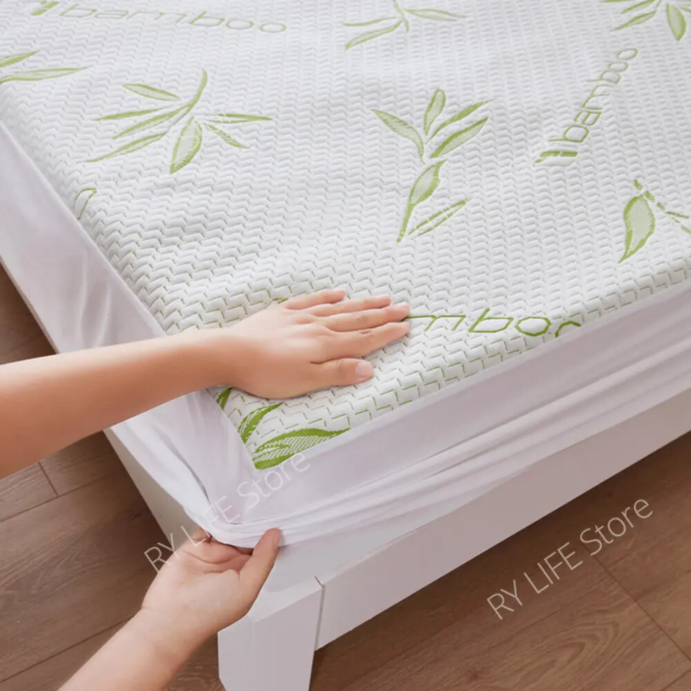 Bamboo Fiber Fitted Sheet with Elastic Band Dustproof Mattress Cover Bed Sheet Cover Non-slip Bed Sheet Mattress Protector Color: As picture Material: Polyester/Bamboo Package include: Fitted Sheet *1PC Features: 1.Soft sheet to creative comfort atmosphere for your bedroom. 2. The fabric of sheet can be washable also machine washable and easy to care for. 3. Elastic band around the edge to fixate fitted sheet to your mattress. Attention: As different computers display colors differently, the color of the actual item may vary slightly from the above images.
