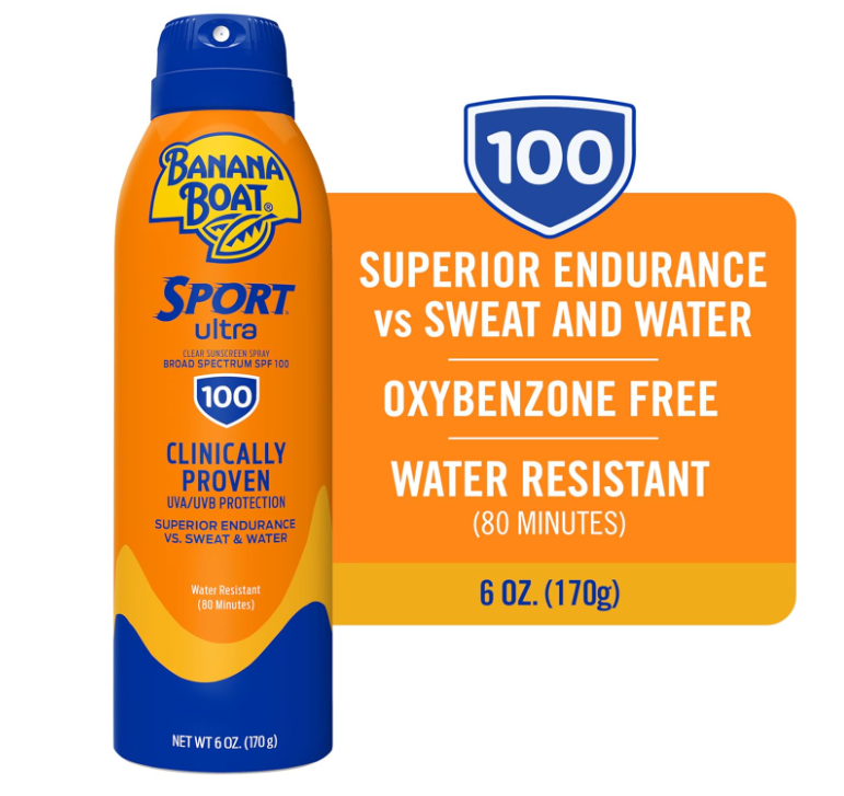 SUPERIOR ENDURANCE VS. SWEAT & WATER — From family fun to hardcore competition, Banana Boat Sport sunscreen provides strong sun protection that stays on so you can play on CLINICALLY PROVEN UVA/UVB PROTECTION — This SPF 100 sunscreen spray protects against 99% of burning rays LIGHTWEIGHT, BREATHABLE FORMULA — Banana Boat clear sunscreen has a non-greasy feel that won't weigh you down HIGH-PERFORMANCE SUNSCREEN — Water & sweat resistant up to 80 minutes LASTS AS LONG AS THE FUN DOES — Reapply as directed on the product label