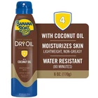 Banana Boat Clear Ultra-mist Deep Tanning, Dry Oil Clear Spray Sunscreen SPF4, 6 Ounce (Pack Of 2) Enjoy a sun-kissed glow with Banana Boat Deep Tanning Dry Oil Clear Spray Sunscreen with SPF 4. This lightweight, non-greasy dry oil tanning spray formula is made with natural argan oil and will leave your skin feeling silky-smooth. Banana Boat tanning oil with SPF is water-resistant for up to 80 minutes and features a cap-free twist 'n lock design and UltraMist technology for quick and easy coverage. About this item This sunscreen offers 3-way protection with high UVB and UVA protection, guarding against sunburn, aging, and long-term skin damage. It lasts longer than ordinary sunscreens as it doesn't break down easily. This sunscreen offers 3-way protection with high UVB and UVA protection, guarding against sunburn, aging, and long-term skin damage. It lasts longer than ordinary sunscreens as it doesn't break down easily. This sunscreen offers 3-way protection with high UVB and UVA protection, guarding against sunburn, aging, and long-term skin damage. It lasts longer than ordinary sunscreens as it doesn't break down easily. This sunscreen offers 3-way protection with high UVB and UVA protection, guarding against sunburn, aging, and long-term skin damage. It lasts longer than ordinary sunscreens as it doesn't break down easily. REE FROM–Tanning oil spray made without oxybenzone and octinoxate WATER RESISTANT for up to 80 MINUTES NON-GREASY and LIGHTWEIGHT FEEL IMPROVED FORMULA–Dry sunscreen spray made with ARGAN OIL Ingredients Active Ingredients: Homosalate (3.0%), Octocrylene (1.0%). Purpose: Sunscreen. Inactive Ingredients: Alcohol Denat., Isobutane, Isododecane, Diisopropyl Adipate, Mineral Oil, Lauryl PEG-8 Dimethicone, Phenylisopropyl Dimethicone, Polyglyceryl-3 Stearate/Isostearate/Dimer Dilinoleate Crosspolymer, Methyl Dihydroabietate, Fragrance, Argania Spinosa Kernel Oil, Ascorbyl Palmitate, Cocos Nucifera (Coconut) Oil, Olea Europaea (Olive) Fruit Oil, Tocopheryl Acetate, Vitis Vinifera (Grape) Seed Oil, Panthenol, Water, Aloe Barbadensis Leaf Extract.