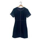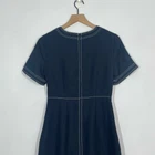 Banana Republic A-Line Dress Womens Size 0 Navy Blue Tonal Stitched Short Sleeve Brand: Banana Republic Size: 0 Style: Dress Color: Navy Blue Condition: Good Preloved Condition This a-line dress detailed with white exposed stitching, crew neck, concealed zip fastening at shoulder, short sleeves. Approximate flat lay measurements Pit to pit 16 Waist 14in Length 34in