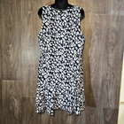 This is a stylish sleeveless dress from Banana Republic. The dress features a distinctive black and white speckled or abstract spotted print, a high neckline, and a flattering A-line silhouette. It has a zipper closure on the back and a navy blue lining. The dress is a size 16 and is made of 100% polyester for both the shell and lining. It is in excellent, pre-owned condition. Key Features: Brand: Banana Republic Size: 16 Color: Black and White (speckle/spotted print) Material: 100% Polyester (Shell and Lining) Style: Sleeveless, A-line Closure: Back zipper Condition: Pre-owned, excellent Shipping & Handling: We offer 1 business day shipping to ensure your item arrives quickly and safely. #BananaRepublic #SpeckledPrint #SpottedPrint #SleevelessDress #Size16 #AlineDress #WomensFashion #CocktailDress #Workwear #PolyesterDress