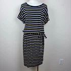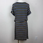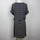 Banana Republic Factory Womens Dress Striped Short cuffed dolman sleeves Round neckline Elastic waist Matching fabric tie belt Midi length Blouson T Shirt Dress Everyday Classic Excellent preowned condition Measurements in photos Size M