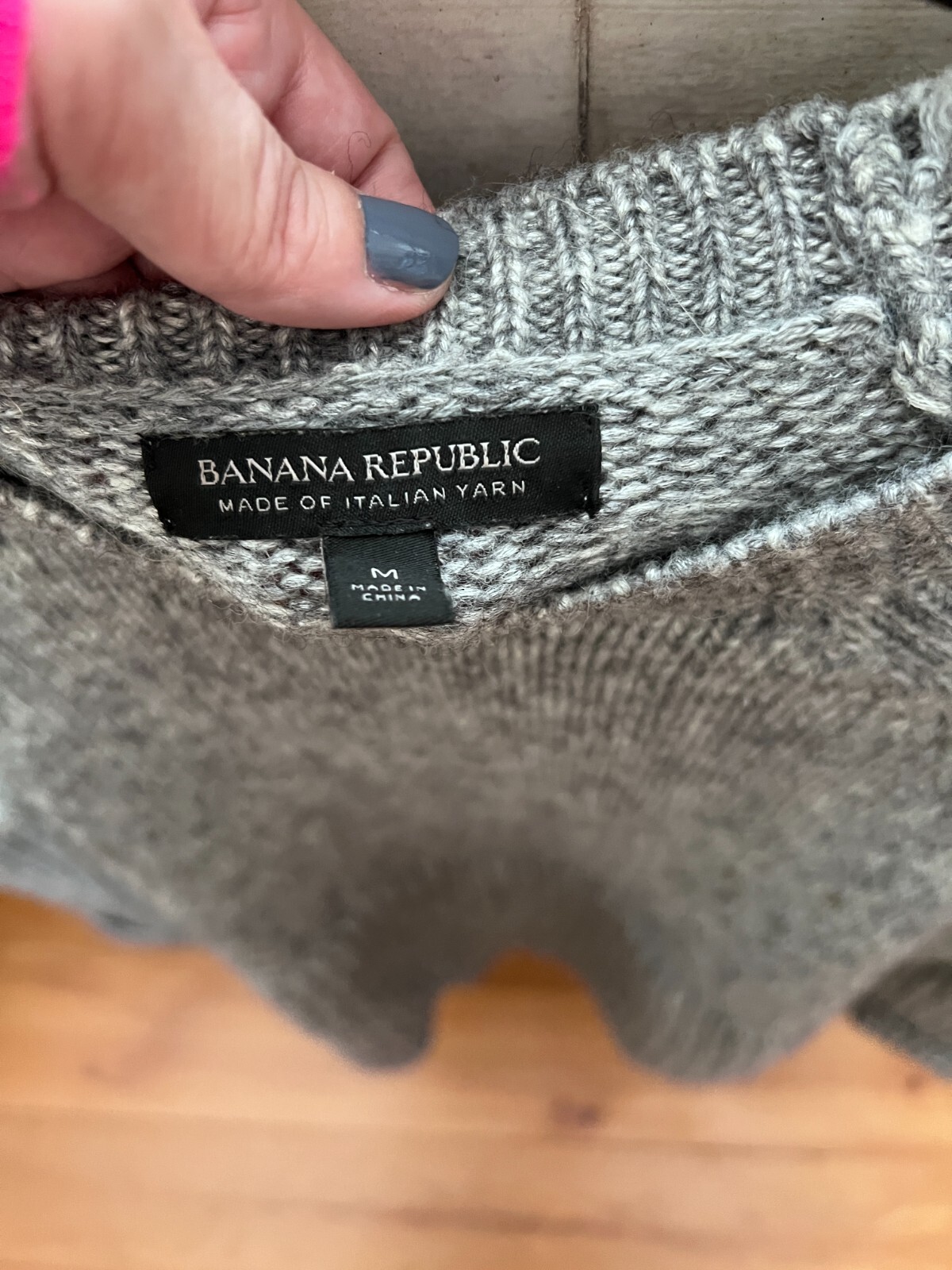 Banana Republic Gray Speckled Italian Yarn Pullover Sweater - Size Medium. Condition is Pre-owned. Shipped with USPS Ground Advantage.