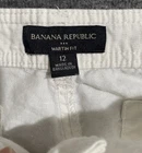 Pattern: Solid Material: Linen Inseam: 21 in Closure: Zip Front Type: Flat Front Personalization Instructions: N/A Accents: Button, Roll Tab Cuff Model: Banana Republic Martin-Fit Waist Size: 34 in Country/Region of Manufacture: Bangladesh Personalize: No Rise: Mid (8.5-10.5 in) Type: Pants Department: Women Fabric Type: Woven Leg Style: Tapered Occasion: Casual, Travel Color: Ivory Features: Breathable, Comfort, Crop, Roll Tab Cuff Size Type: Regular Season: Summer, Spring, Fall Garment Care: Machine Washable Brand: Banana Republic Theme: Preppy, City, Beach Vintage: No Size: 12 Handmade: No Fit: Regular Style: Cropped