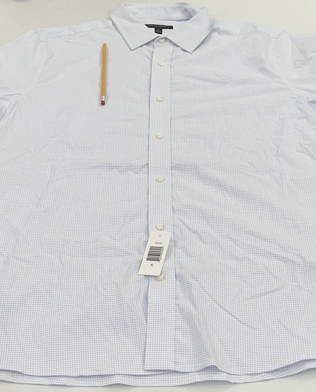 Banana Republic Men's Non-Iron Slim Fit Dress Shirt Stained (See the Pictures Please) Size: X-Large Color: Light Blue Content: 97% Cotton / 3% Spandex