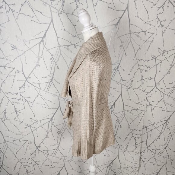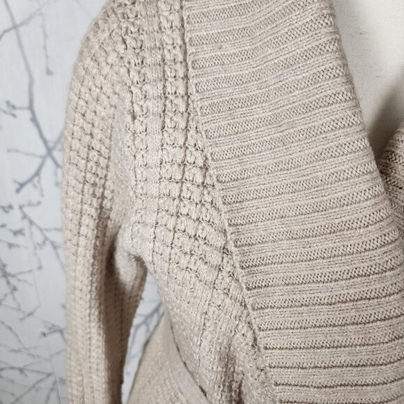 Banana Republic Oatmeal Wool Alpaca Blend Belted Cardigan style tags: preppy, business casual, feminine, neutral, cozy Women's L Chest: ~20" Length: 26" Good used condition: no rips, marks or stains.