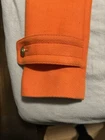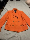 This is a Banana Republic orange peacoat in size XSmall for women. It is made of a cotton blend material and features hidden buttons, front pockets, and a pea coat style.