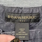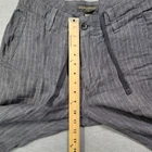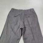 These are men's Banana Republic pants in size 29x32, featuring a gray striped design. Made of linen, they have a straight leg style with a drawstring closure. The pants have a flat front, mid-rise fit, and are of regular fit and size type.
