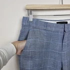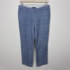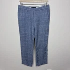 Banana Republic Avery Pants Linen and rayon blend Flat front Pockets Zipper closure Tapered leg Office Career Grid plaid print Good preowned condition Measurements in photos Size 4P