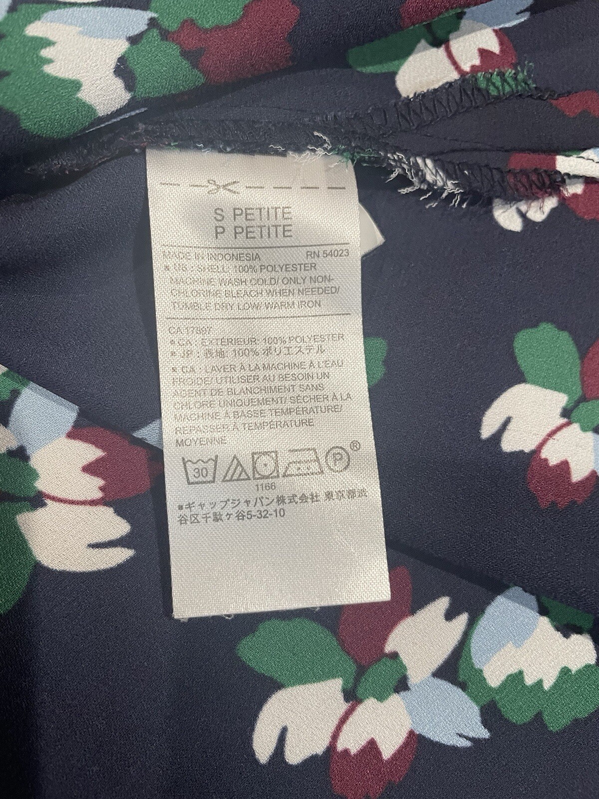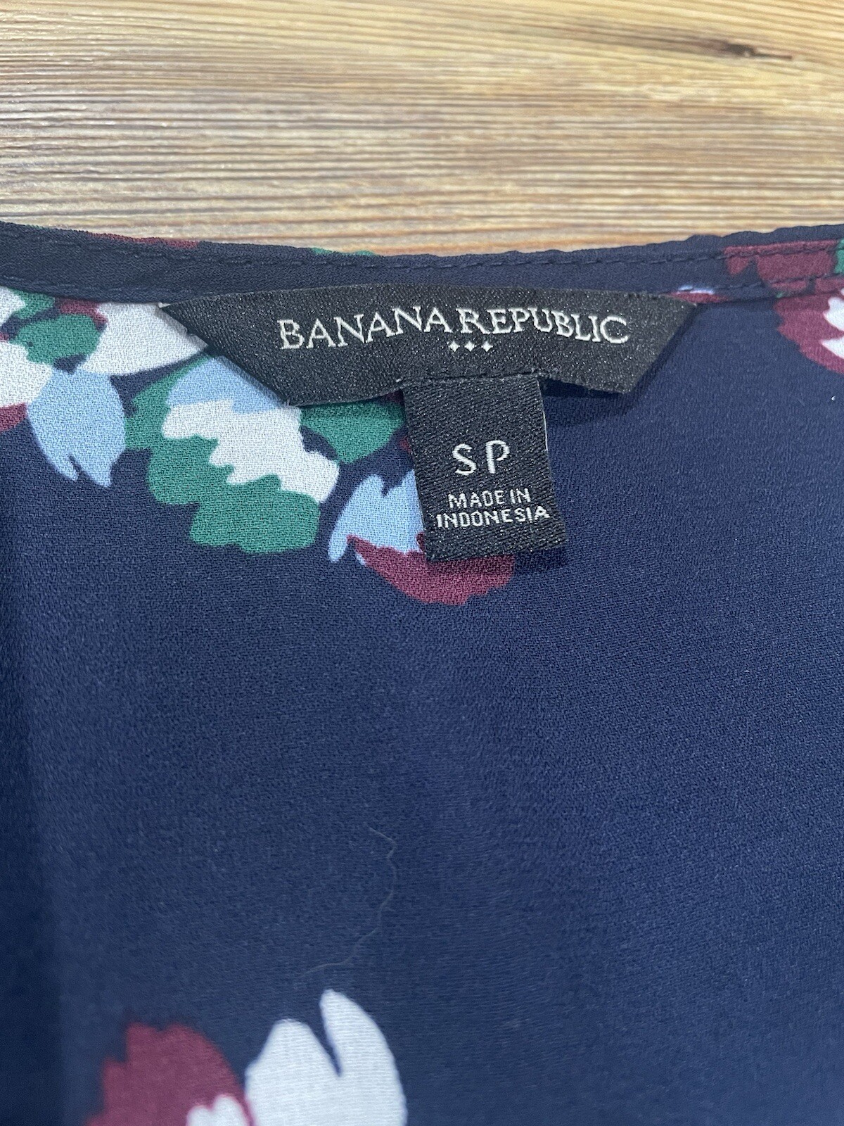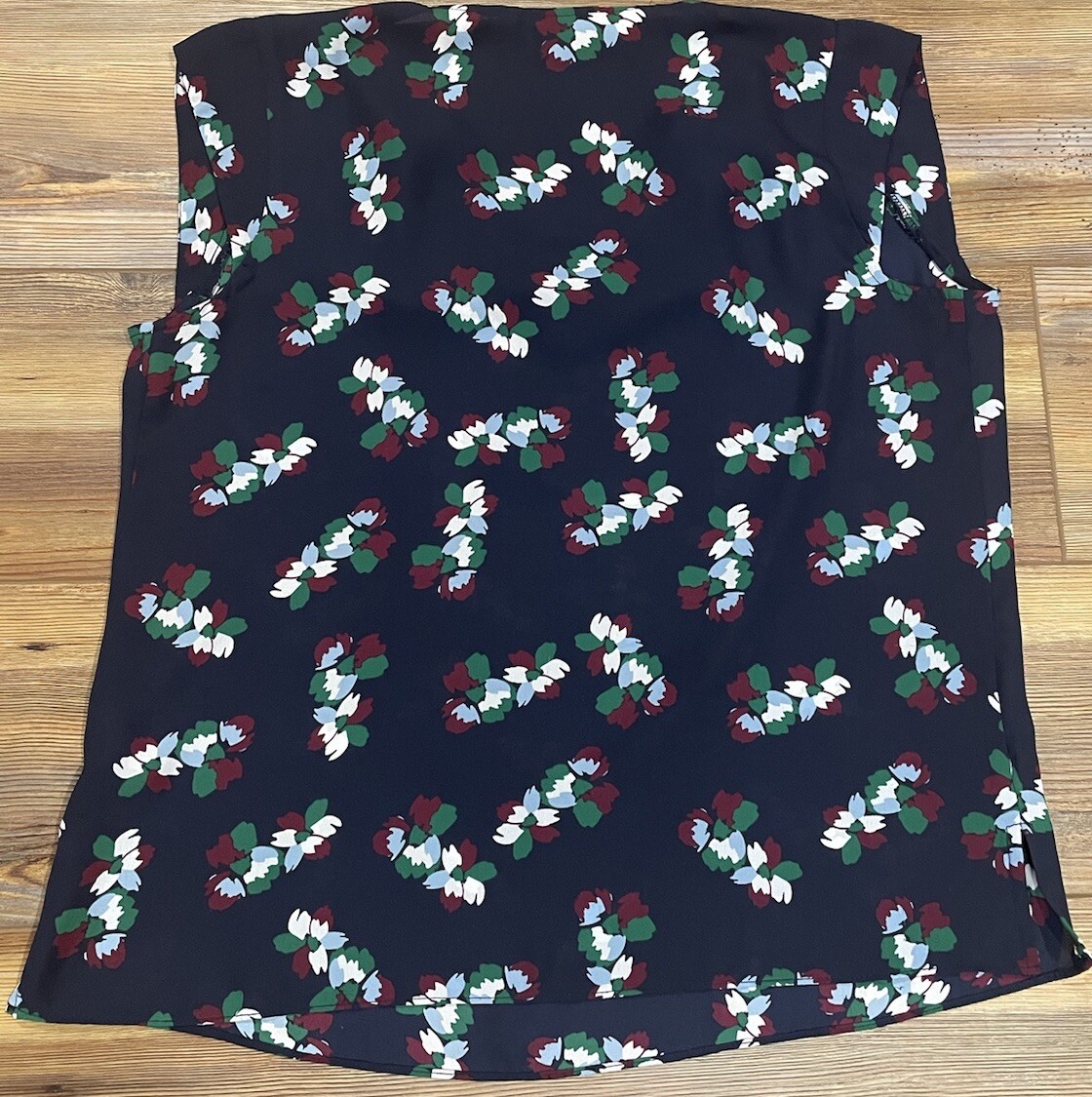 Banana Republic navy with floral design sleeveless blouse V-neck, slightly sheer.