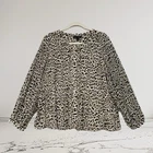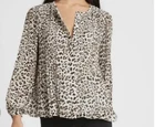 Add some excitement to your wardrobe with this stunning Banana Republic Release Pleat Blouse. Featuring a Gorgeous animal print pattern in a beautiful multicolor scheme, perfect for any occasion from casual to business or even a party or cocktail event. The button front , long balloon sleeves and pleated, flowy accents add a touch of elegance to the classic and modern theme of the blouse, making it a must-have in your collection. This blouse is a great addition to your wardrobe, and the versatile style makes it easy to mix and match with other items. Size Large See Pics For Measurements Make sure to Compare Measurements to items you already own & love to ensure a Good Fit before placing an order & for best buying experience ! We Ship out all purchases within 1 business day of payment. Automatic $10 flat Rate Combined Shipping on all items added to cart & paid for together in 1 order. 30 day Free Returns just in case you don’t Love it ! Happy Shopping 😊