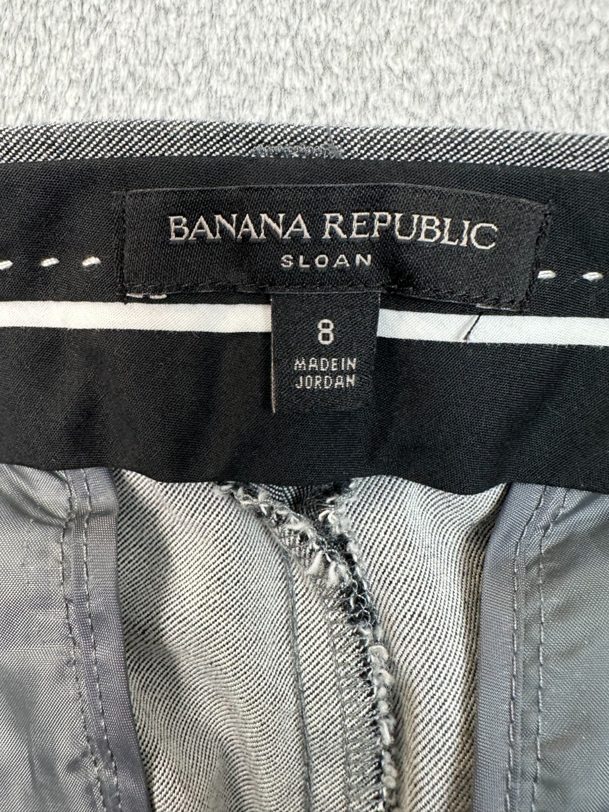 Features: Banana Republic Sloan Fit — slim, tailored silhouette Classic heather gray color Soft, stretchy cotton-rayon blend with spandex for comfort Mid-rise waist with hook and bar closure Professional, flattering style for office or business casual wear Fabric: 53% cotton, 42% rayon, 5% spandex Made in Jordan Women’s Size 8 Perfect for office, career, or versatile everyday wear. See included photos for measurements and details. 💛 Thanks for supporting our small family business!