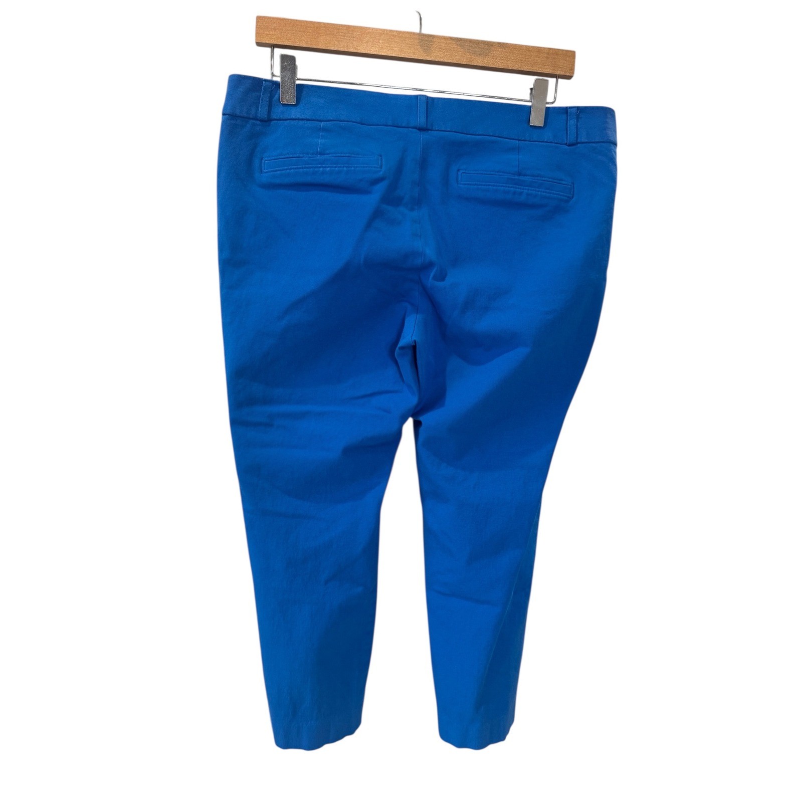 Elevate your wardrobe with these vibrant Banana Republic Sloan pants. The rich blue hue brings a pop of color to any outfit, while the slim fit and ankle crop offer a modern and flattering silhouette. Crafted for comfort and style, these pants transition seamlessly from a professional office setting to a chic weekend brunch. Measurements: • Waist: 34 in • Inseam: 26 in • Rise: 10 in • Leg Opening: 7 in Style: Chino Material: Viscose, Cotton, Spandex Leg Style: Straight Fabric Type: Twill Features: Stretch, Pockets, Wrinkle Resistant Closure: Zip, Button, Pull On Pattern: Solid Accents: Button Occasion: Casual, Workwear Fit: Regular Model: Banana Republic Sloan Front Type: Flat Front Keywords: Banana Republic, Sloan Fit, womens pants, blue pants, slim fit, ankle pants, cropped trousers, workwear, business casual, smart casual, tailored pants, everyday wear, versatile