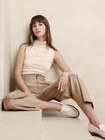 The Banana Republic Soft Luxe Turtleneck Top is a versatile and stylish addition to any woman's wardrobe. Made from a luxurious blend of 80% rayon, 17% polyester, and 3% elastane spandex, this top offers a comfortable and breathable fit. The sleeveless design, turtleneck neckline, and pullover closure make it easy to wear for various occasions from casual to formal. With a solid pattern and classic fit, this top can be machine washed and styled for all seasons. Perfect for travel, business meetings, or a night out, this top is a timeless and chic choice for any woman.