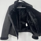 Banana Republic Suede Faux Fur Trim Jacket Black Womens Size Medium Moto Pre-Owned Excellent Used Condition Ships next day No rips stains or tears Smoke free Faux fur interior lining