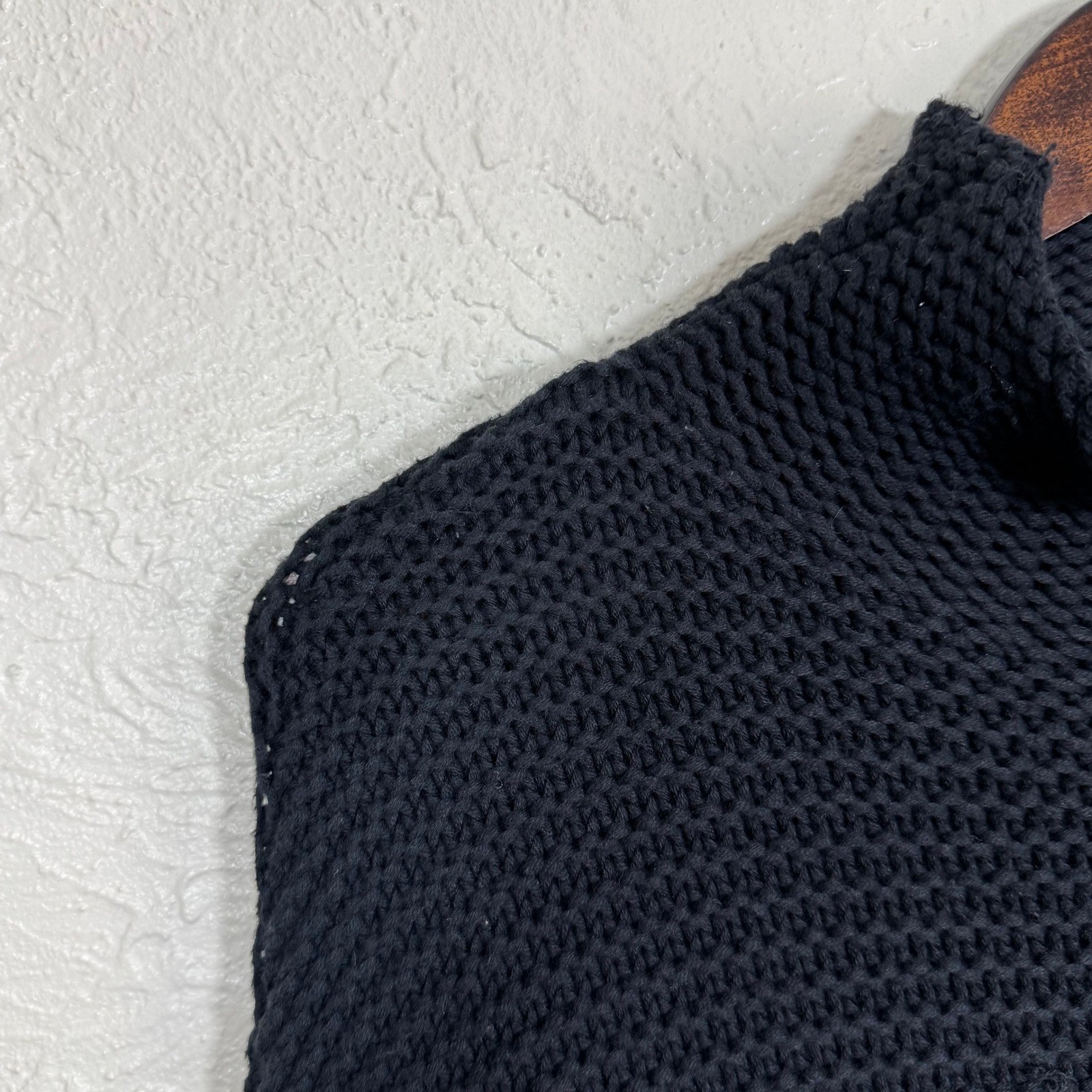 Banana Republic Sweater XS Chunky Knit Mock Neck Heavy Soft Minimalist Luxury Banana Republic Chunky Knit Sweater Women's Medium Black Mock Neck Minimalist Brand: Banana Republic Size: Women's size extra small (Please note that size tag has been removed. Please refer to measurements to ensure fit. This is a slightly oversized style). Color: Black Features: Chunky knit texture, mock neck, ribbed cuffs, side split hem, relaxed fit, pullover style Condition: There was a small amount of fraying on the neck hemline, but this has been repaired with stitching. Please see last picture for a detailed view. Otherwise, this sweater is in excellent preowned condition with no other flaws. All purchases are shipped within one business day of purchase. Free returns are accepted for any reason within 30 days of purchase. Keywords: minimalist, chunky knit, quiet luxury, classic, timeless, cozy, oversized, casual, modern, capsule, artsy, bohemian