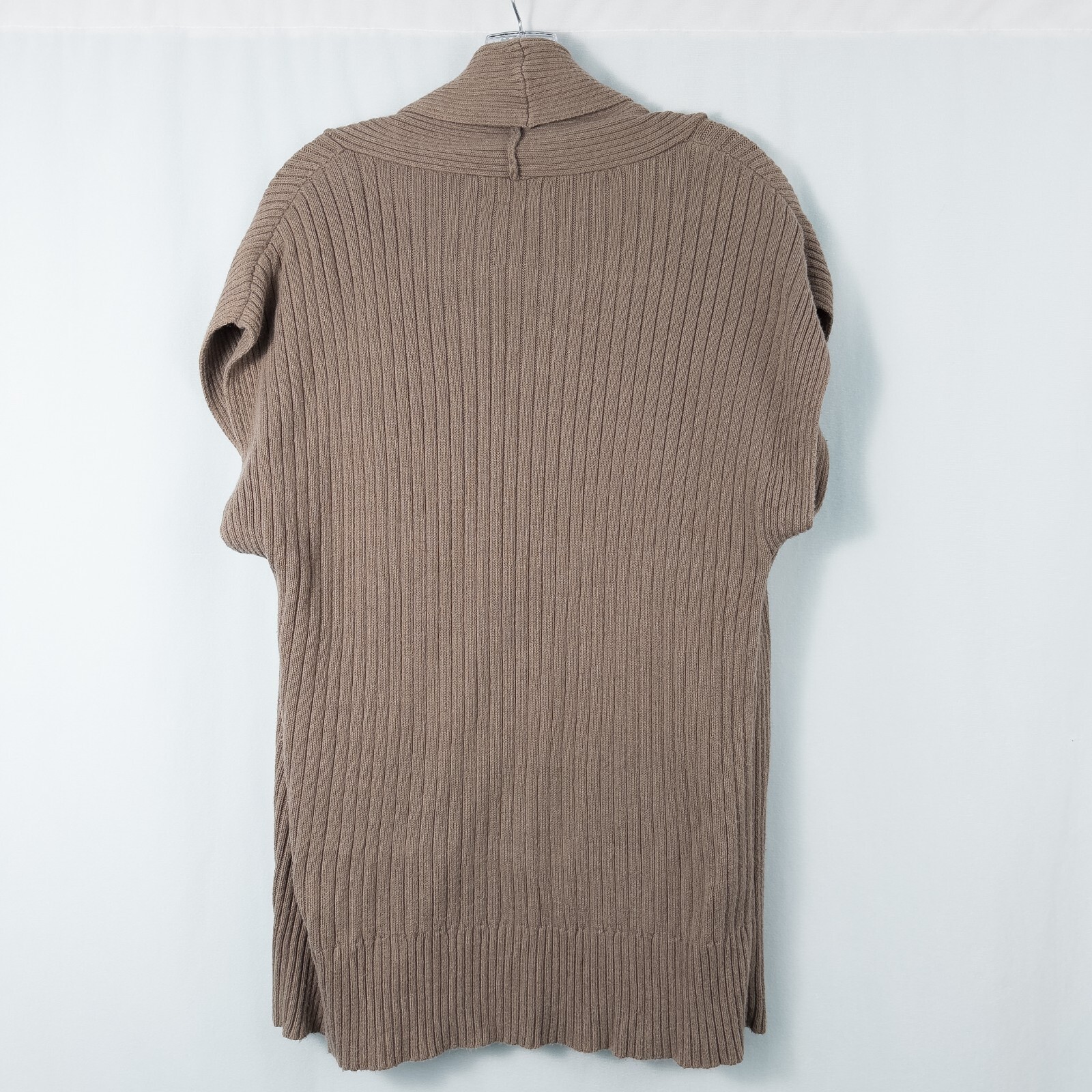 Banana Republic Short Sleeve Knit Open Cardigan from 2008 * Condition: Good pre-owned condition. There's some pilling throughout and it's missing a belt. No stains or holes. Please see photos. * Size: Small * All measurements are approximate and taken lying flat. Please see photos as well. * Chest: 20” pit to pit * Length: 27-28” from shoulder to hem * Color: Tan/Brown * Material: 53% Cotton, 42% Nylon, 5% Angora Rabbit Hair * Short Sleeve * Open front * Ribbed knit * Belt loops (belt not included) * Style: 599068-01-1 * Machine Washable Style Profile: Y2K, Minimalist, Office, Lagenlook, Boho, Bohemian, Neutral, Everyday All of my items are stored in a smoke-free, dog-friendly home.
