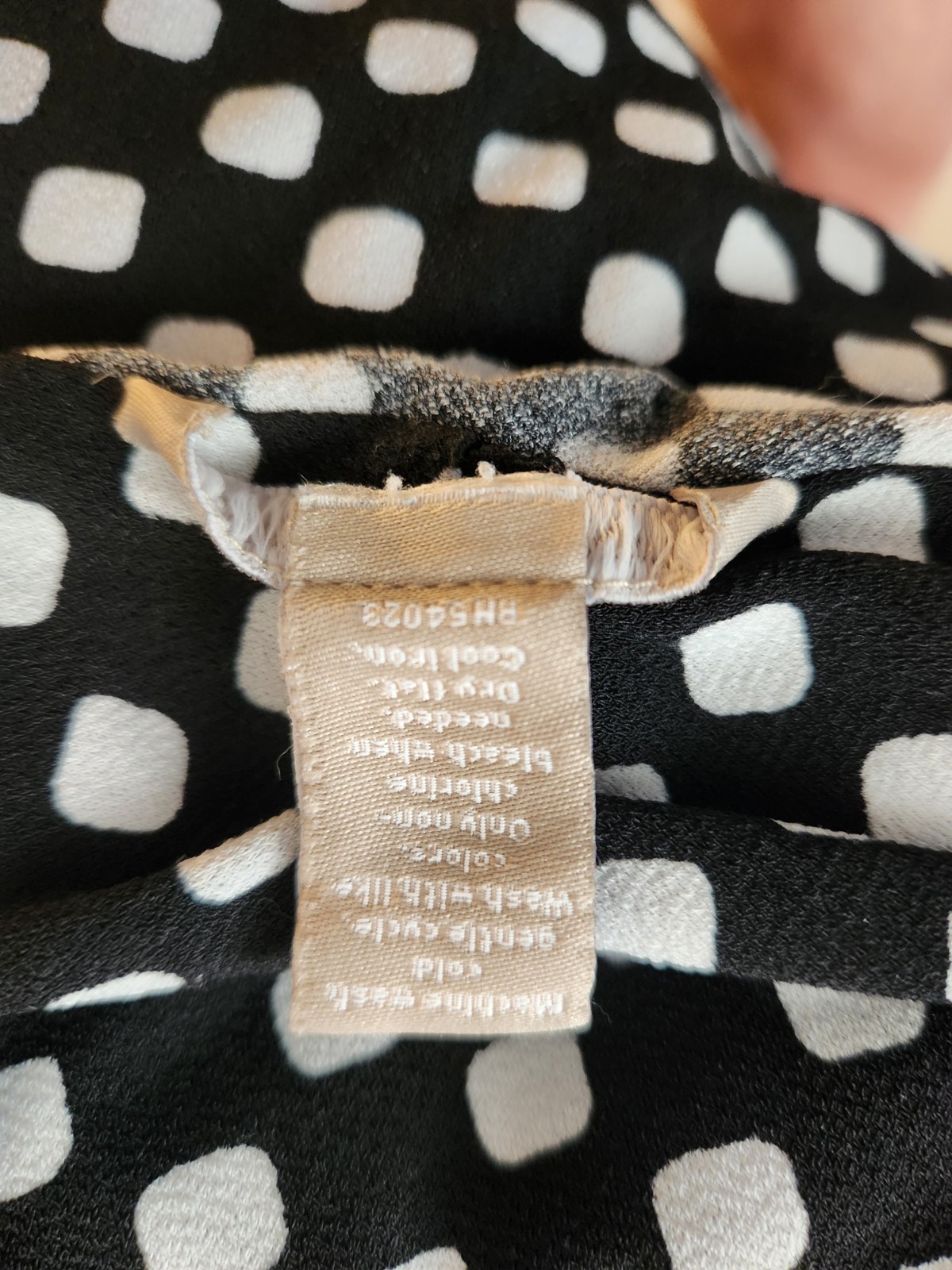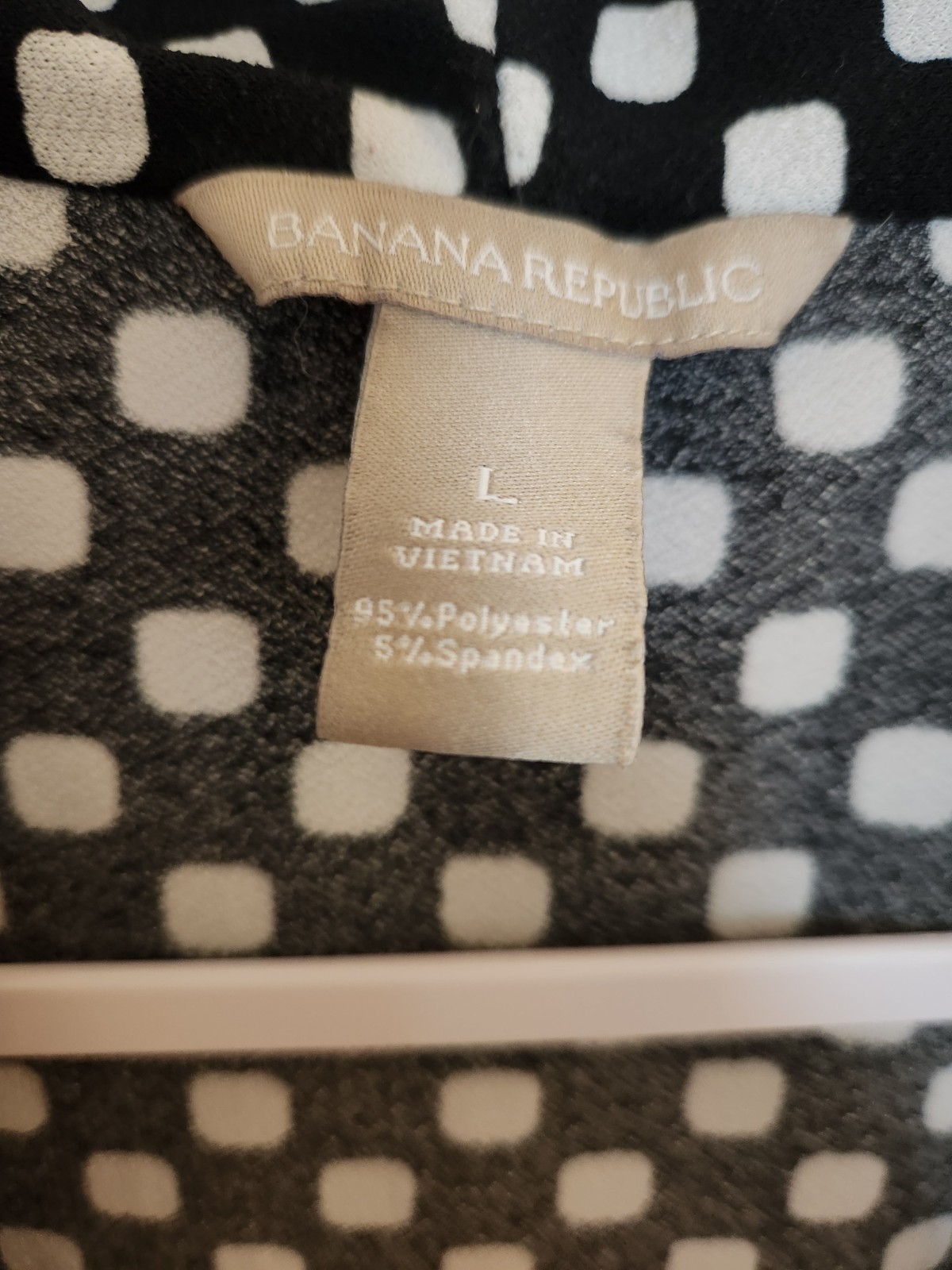This Banana Republic Women's Blouse is a stylish and versatile top perfect for casual occasions in the summer, fall, or spring. Made from polyester, this blouse features a geometric pattern, a V-neckline, and a pullover closure for easy wear. Armpit-to-armpit 18", Shoulder-to-hem length 28"
