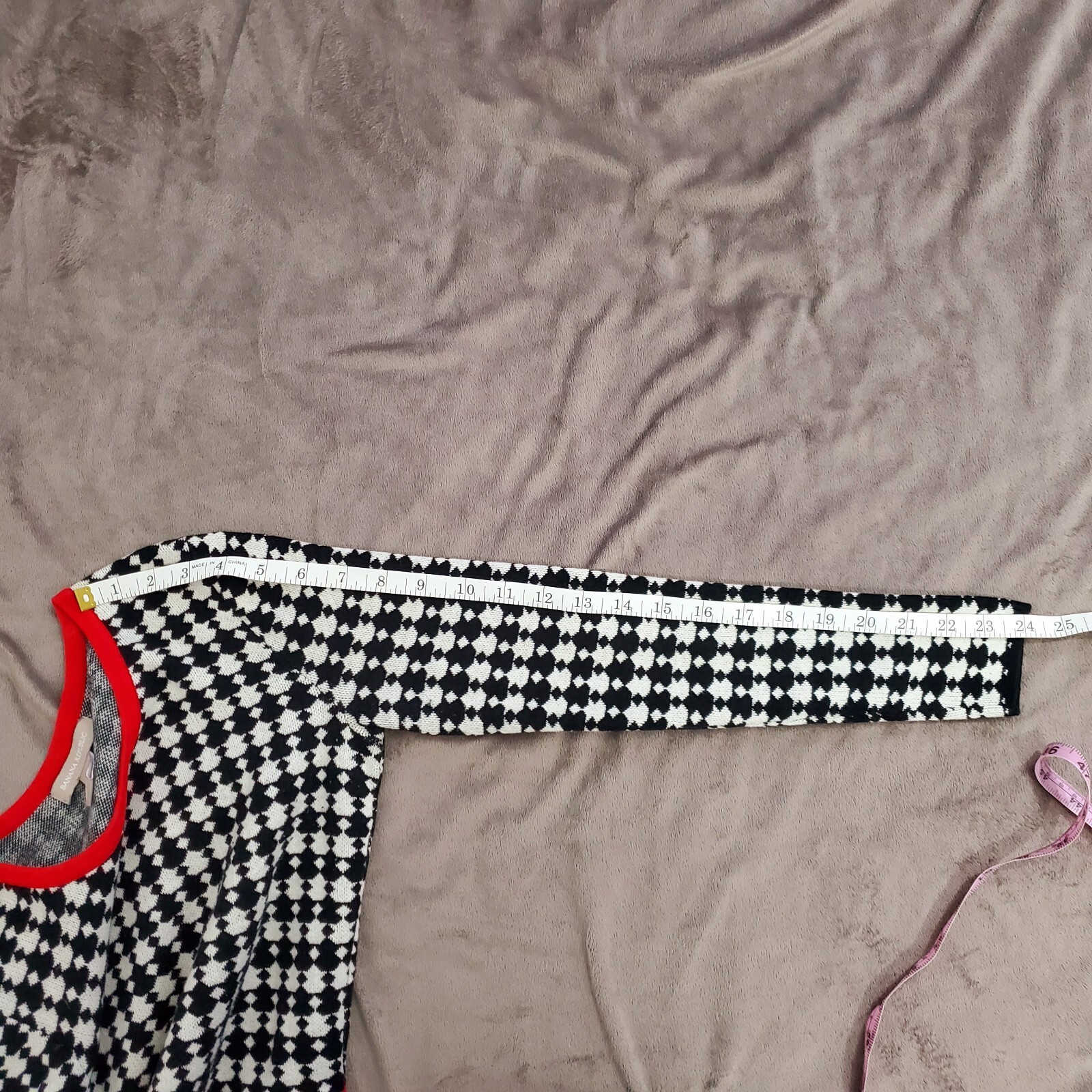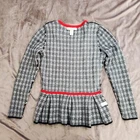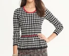 This Banana Republic peplum Sweater is in great used condition with no visible holes, rips, stains, or defects. This is a lighter-weight sweater, great for in the Spring or Fall. Tag Size XSP See photos for condition and measurements. Pit to pit 15 1/2"; Length 21"; Sleeve 24"; Shoulder 12" Color Black /White print /Red trim Fabric & Care 100% Cotton Machine Wash Cold TTopBin 22
