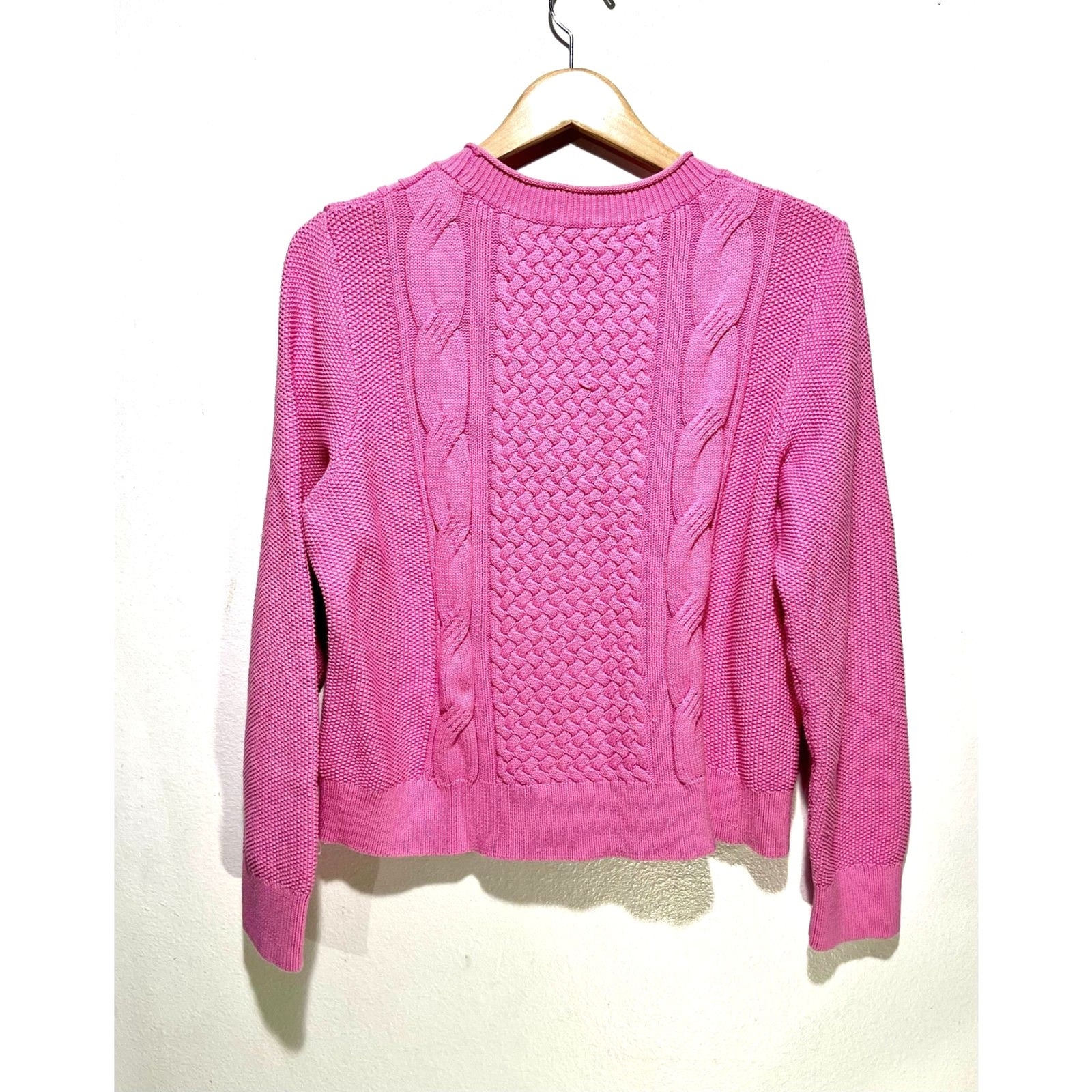 Absolutely love this cozy cable-knit sweater from Banana Republic! The soft cotton material feels luxurious, and the fit is perfect—relaxed but flattering. The pink color is gorgeous, adding a cheerful pop to winter outfits. Works great dressed up or down. Super warm, well-made, and definitely a staple piece. Highly recommend!