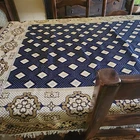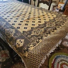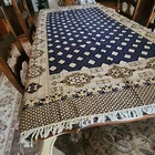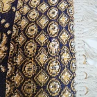 Banarasi Saree Border Brocade Wall Hanging Tablecloth Ethnic Gold Blue 87x55 in. Fringe all around the edges. Navy blue with gold thread - reverse print.