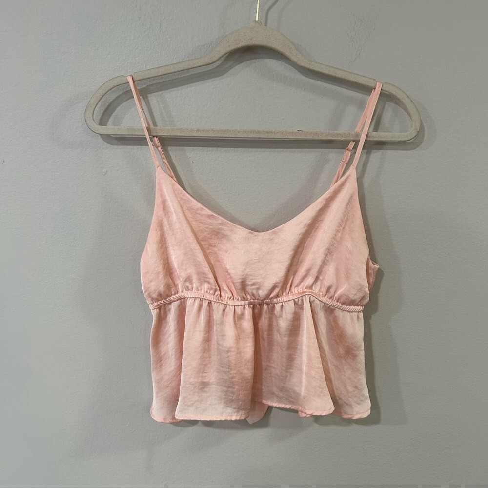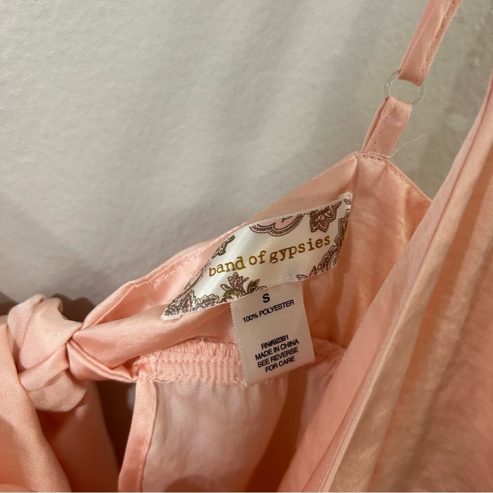 This pink camisole from Band of Gypsies features a deep V-neckline and a sleeveless design, perfect for warm weather. The bustier style with a peplum hem adds a touch of elegance and femininity, making it a versatile piece for casual outings or layering. Its lightweight fabric ensures comfort and a delicate appearance. 3003