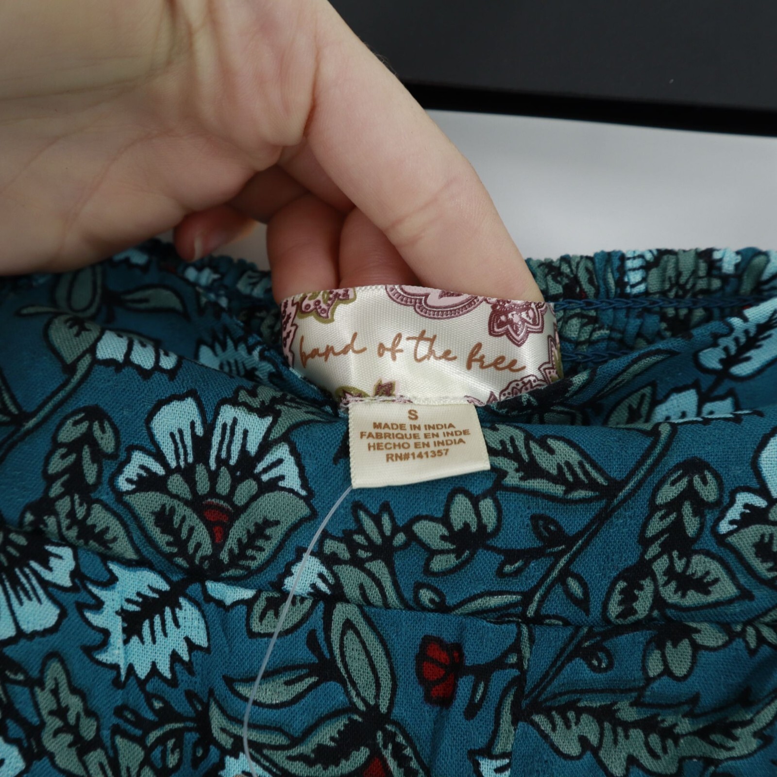 These pants are so wide and flowy, you might just take flight! With a floral print that screams, "I love long walks to the fridge," they're a must-have. • Elastic waistband for comfort • Deep teal aqua floral pattern • Wide leg design • Includes pockets • Lightweight & breathable • Flowy B.O.G Collective Band of Gypsies Features: flowy, bohemian, boho, travel, resort, cruise, beach, coastal, hippie, garden party Size: Womens S Condition: New With Tags New with tags, see photos for details. All clothing items have either been steam sanitized or run through the wash.