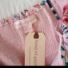 Band of gypsies floral pink mini dress Front tie, smocked back, Adjustable spaghetti straps, Partial front button closure 100% viscose Size Medium Chest across not stretched 16" Waist not stretched 14" Length about 36" Length from armpit to hem 26" New with tag