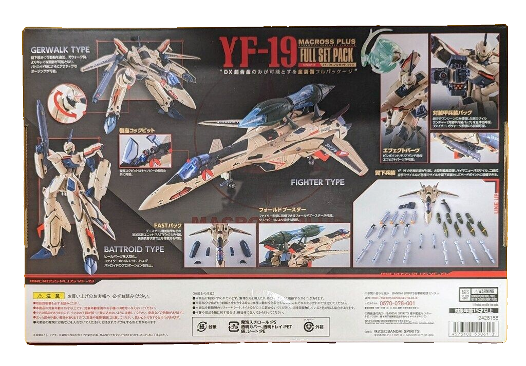 Bandai DX Chogokin Macross Plus YF-19 Full Set Pack ACtion Figure Japan NEW Description After purchasing and opening, I stored it in a storage cabinet out of direct sunlight, and I think it is in good condition. Shipping Expedited Shipping(FedEx). Free Shipping International Buyers - Please Note: Import duties, taxes, and charges are not included in the item price or shipping cost. These charges are the buyer's responsibility. Please check with your country's customs office to determine what these additional costs will be prior to bidding or buying. Thank you for your understanding. Item Title Description Brand New Shipping Expedited Shipping(FedEx). Free Shipping International Buyers - Please Note: Import duties, taxes, and charges are not included in the item price or shipping cost. These charges are the buyer's responsibility. Please check with your country's customs office to determine what these additional costs will be prior to bidding or buying. Thank you for your understanding.