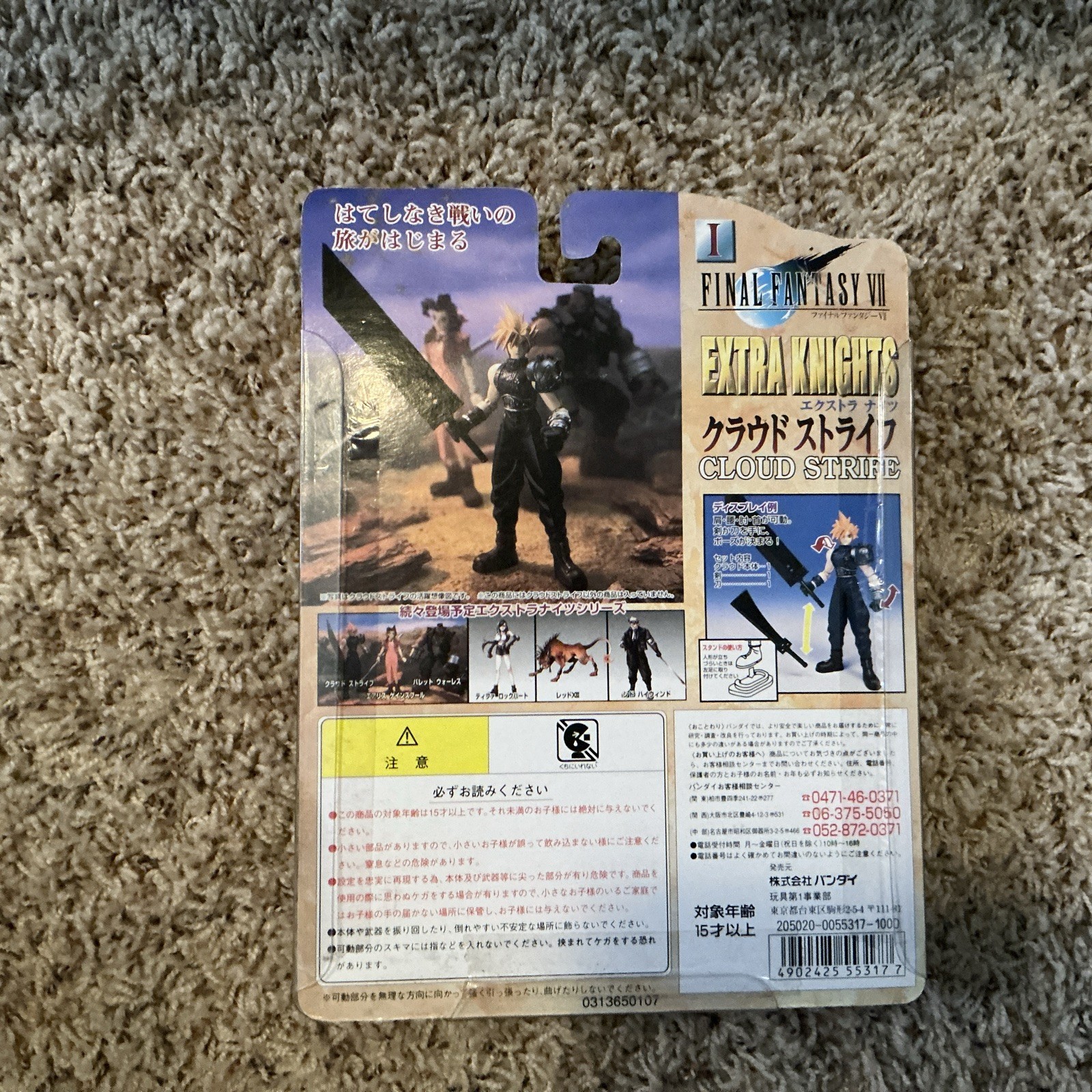 The Bandai Final Fantasy VII Extra Knights Cloud Strife Action Figure from 1997 is a detailed and dynamic pose statue of the popular character Cloud Strife from the Final Fantasy franchise. Made of plastic and approximately 6 inches tall, this multicolor action figure captures the essence of the video game hero in a Japanese-themed design. Perfect for collectors and fans of the Final Fantasy series, this Bandai figure showcases the unique and iconic look of Cloud Strife in a pose that brings the character to life.