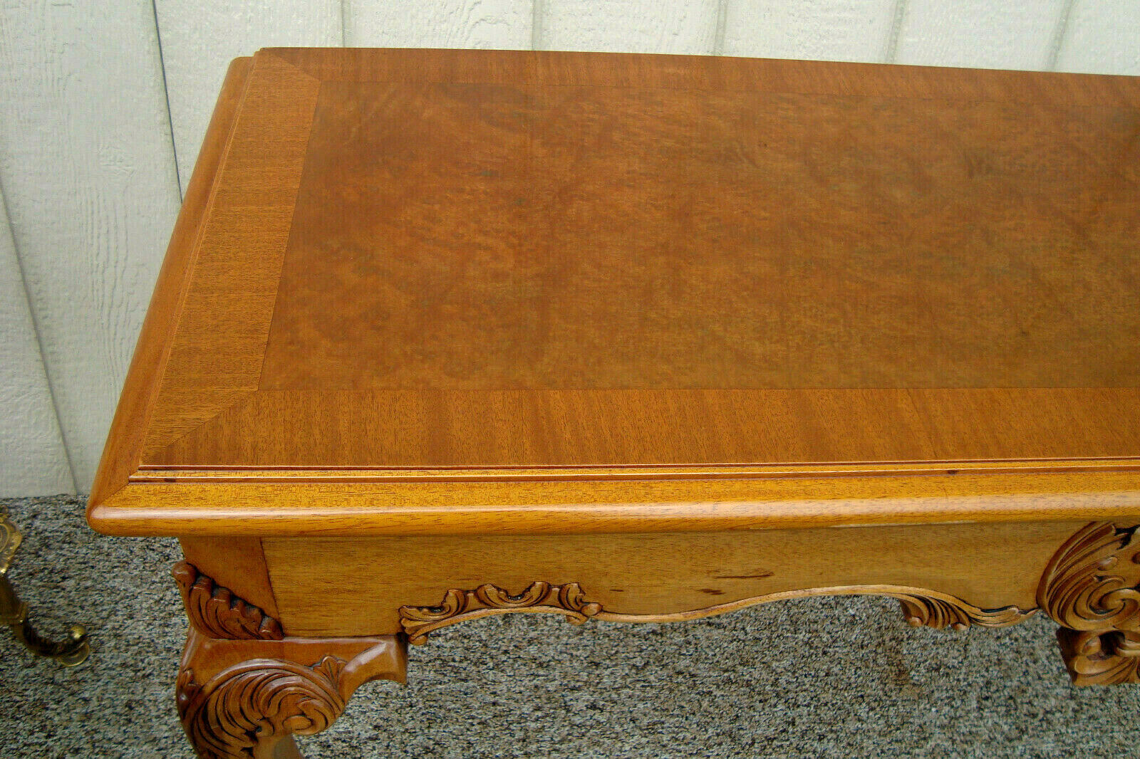 Item Description- quality mahogany console table. It is tight and sturdy and in very good condition and ready for your home. It was built to last a lifetime. WE SHIP ANYWHERE IN THE USA. IF YOU NEED A HOME DELIVERY QUOTE EMAIL US YOUR ZIP CODE. THE EBAY SITE IS SOMETIMES BROKEN AND WILL NOT LET YOU PURCHASE AN ITEM SAYING WE DO NOT SHIP TO YOUR LOCATION. THE WORK AROUND IS TO MAKE AN OFFER FOR THE AMOUNT STATED ON THE LISTING THEN WAIT FOR ME TO INVOICE YOU BEFORE TRYING TO PAY. SHOWROOM NUMBER 609 261 0602. SHIPPING: Center Stage does our own deliveries to New York, Pennsylvania and New Jersey including the New York city and Philadelphia area every 1-2 weeks at very reasonable rates. For rates please email us with zip code. Age- circa 1990 Size- 50"W x 17"D x 31"H This item can be packaged, insured and shipped via freight directly to your home. Please ask for a home delivery quote before purchasing this item. BUYER IS RESPONSIBLE TO PAY SHIPPING COSTS ON ALL ITEMS! If you need home delivery email us with your zip code for a quote. Large items or those over 100 lbs. will need freight shipping and we are happy to provide a free quote but you will pay the shipper directly. Expect delivery times on these items to be approx. 2-6 weeks depending on your location. All local deliveries within 50 miles and to NYC are done by Center Stage Antiques. If you are picking up from our store you will need to contact us with a pick up time. NJ residents and buyers picking up are subject to NJ sales tax. Center Stage Antiques has been at its current location for 23 years, selling high quality used estate furnishings at a fraction of the cost. All items are sold in their original condition and ready to place in your home. If you have any specific questions regarding the condition of an item please email us before bidding. We are a small family business who do everything ourselves including packaging and local deliveries.