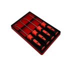 4 Piece Miniature Pick/Screwdriver Tray (Fits: Snap On Instinct Grip) (Red/Black) Tray specially designed to accommodate 4 Snap On Miniature Instinct grips including tools found in the following sets: -4 pc Instinct Soft Grip Miniature Pick Set (SGASA204C) -4 pc Instinct Soft Grip Mini-Tip Combination Screwdriver Set (SGDX40B) -4 pc TORX Instinct Soft Grip Mini-Tip Screwdriver Set (SGTX40B) -12 pc Instinct Soft Grip Combination Screwdriver & Pick Set (SGDXMINI12) Fits tools with soft instinct grip of approximately 3" (handle/grip length) and less than 6 - 1/8" total length Dimensions: 6.75" x 4.5 x 0.6" Storage tray for Snap On mini instinct grip tools Shipping from the USA All of our products are shipped from the USA, ensuring quick delivery to your destination. Payment We offer the following payment methods: PayPal, credit card, bank transfer, and eBay's secure payment system. Free Shipping & Free Returns Shipping within the USA is FREE. Additionally, any return is absolutely free for you. Risk-Free Purchase You have the option to return an item within 30 days without any justification. We cover the return shipping costs! Fast Shipping We ship immediately upon receipt of payment. Generally, the package is delivered within 2-3 days in the USA. If it takes longer, we will contact you. Quality and Costs Made in Europe, USA, China No customs fees or additional charges Total satisfaction guarantee Invoice with declared VAT available upon request in .pdf format Feedback Your feedback is very important to us. After you pay for your purchase, you will automatically receive positive feedback from us.