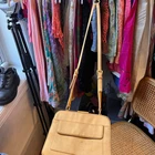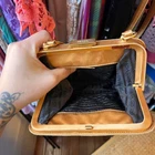 This is a vintage Prada crossbody bag from the 90s-early 2000s, featuring a gold satin exterior. The design, reflects the fashion trends of that era. Ideal for women who appreciate retro accessories with a touch of luxury.