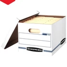 Free up space in any area using this Bankers Box file storage. It is ideal for organizing the office, home, dorm room and much more. The lift-off-lid boxes are easy to use and can be utilized for archiving receipts, tax papers, contracts and other important documents. Pack items for moving or give the closet a makeover. Each of these white storage boxes is ideal for moderate stacking, and the durable handles make them easy to transport. Basic-duty with 350 lbs. stacking strength. They measure 12""L x 10""W x 15""D and are available in a convenient 10-pack of file storage bins, so there are plenty to get the job done. Basic-duty, 350 lbs. stacking strength Standard set-up construction for moderate stacking with shelving 10 pack Assembled Dimensions: 10”H x 12”W x 15”D" Lift-off lid ships attached to prevent lid loss, then tears off for use Double wall, single wall construction