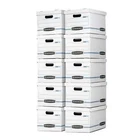 Product details Free up space in any area using this Bankers Box file storage. It is ideal for organizing the office, home, dorm room and much more. The lift-off-lid boxes are easy to use and can be utilized for archiving receipts, tax papers, contracts and other important documents. Pack items for moving or give the closet a makeover. Each of these white storage boxes is ideal for moderate stacking, and the durable handles make them easy to transport. Basic-duty with 350 lbs. stacking strength. They measure 12""L x 10""W x 15""D and are available in a convenient 10-pack of file storage bins, so there are plenty to get the job done. Basic-duty, 350 lbs. stacking strength Standard set-up construction for moderate stacking with shelving 10 pack Assembled Dimensions: 10”H x 12”W x 15”D" Lift-off lid ships attached to prevent lid loss, then tears off for use Double wall, single wall construction Features Stackable Bases Manufacturer Part Number 79910 Color White Manufacturer Fellowes Recommended Location Indoor Material Paper Assembled Product Dimensions (L x W x H) 3.12 x 22.12 x 10.00 Inches