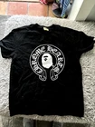 This Bape Baby Milo X Chrome Hearts Tee is a must-have for any fashion-forward individual. The black cotton material is comfortable and durable, making it perfect for summer wear. The short sleeve design features a heart and ape character, adding a touch of playfulness to the overall look. The geometric pattern and regular fit make this t-shirt a versatile addition to any wardrobe. It is perfect for casual outings or for showing off your unique designer style. Whether you're a fan of Bape or Chrome Hearts, this tee is sure to impress.