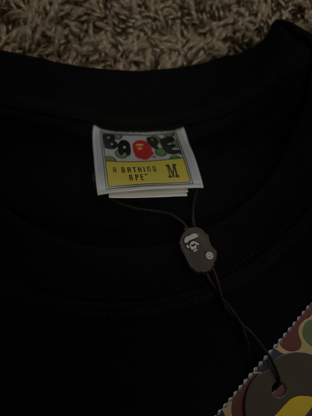 Just got this Bape tee and it's absolutely fire! The fit is perfect, quality is top-notch, and the design is so unique. Definitely worth every penny!