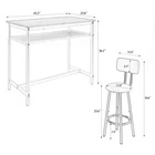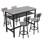 ✅ 1 YEAR WARRANTY & 30-DAY FREE RETURN GUARANTEE - Shop with confidence! We stand behind our product quality with a 1-year manufacturer warranty against defects. If you're not completely satisfied for any reason, enjoy a hassle-free 30-day free return policy. Upgrade your home dining space with our stylish and functional 5-piece counter height dining set! This antique grey set includes 1 compact bar table and 4 comfortable stools, designed to fit seamlessly into small apartments, kitchens, dining rooms, or home bars. Combining modern pub style with durable construction, it's ideal for family dinners, friend gatherings, or casual breakfasts. ✨ KEY FEATURES THAT STAND OUT Super Sturdy & Durable Construction - The tabletop is crafted from high-quality environmental MDF with precision edge technology, offering waterproof and scratch-resistant performance—effortless to clean with a damp cloth or mild detergent. Heavy-duty powder-coated steel legs ensure exceptional stability, while the table supports up to 176lbs and each stool holds an impressive 440lbs (way more than standard sets!). Space-Saving Design for Small Areas - Measuring 43.3"L x 23.7"W x 36.2"H, this compact set maximizes every inch of your space. When not in use, all 4 stools tuck neatly under the table—no more cluttered walkways! Perfect for studio apartments, cozy kitchens, or small dining nooks. Comfortable Seating Experience - Each stool features a wooden backrest for gentle support and a looped footrest that lets you relax comfortably. Under-seat crossbars reinforce stability (no wobbly stools!) and the integrated footrest brace keeps your feet at ease during long meals or conversations. Built-In Storage Solution - A handy mesh shelf under the table provides extra storage for books, chargers, napkin holders, or dining essentials—keeping your space organized and clutter-free. It's the little detail that makes daily use more convenient! Versatile for Any Occasion - More than just a dining set! Use it as a breakfast bar, home office desk, or a casual workspace. It also works great in commercial settings like small bars, bistros, or cafes. Accommodates 4-6 people—perfect for family meals or small get-togethers. Modern Style That Blends In - The sleek antique grey finish and simple pub design complement any home decor—from farmhouse to contemporary. Add a touch of elegance to your space while keeping a relaxed, inviting vibe. 📐 PRODUCT SPECIFICATIONS Item Details Set Includes 1 Table + 4 Stools (5 Pieces Total) Color Antique Grey Material High-Quality MDF Board & Heavy-Duty Steel Frame Table Dimensions 43.3"L x 23.7"W x 36.2"H (Assembled) Stool Dimensions 12.6"L x 12.6"W x 34.6"H Weight Capacity Table: 176lbs; Each Stool: 440lbs Total Weight 67lbs (Table: 32.2lbs; Single Stool: 7.5lbs) Packaging 1 Package (47.24"L x 27.40"W x 5.00"H, 69.5lbs) 🔧 EASY ASSEMBLY & MAINTENANCE No professional tools needed! This set assembles in just 20 minutes —we include clear instructions, all necessary accessories, and tools. The waterproof, scratch-resistant tabletop and smooth stool surfaces are a breeze to clean: simply wipe with a damp cloth or mild detergent to keep them looking like new. 🏡 WHY CHOOSE OUR DINING SET? Whether you're enjoying a quiet breakfast, hosting a game night with friends, or working from home, this 5-piece set adapts to your needs. Its durable construction ensures long-lasting use, while the modern design elevates any space. Plus, our 1-year warranty and 30-day free return policy give you total peace of mind! SHIPS FAST in 1 package—get your new dining set delivered quickly to start enjoying better meals and gatherings!