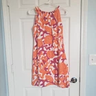 Barbara Gerwit Coral Freeform Print Halter Shift Dress. Cotton Stretch with 95% Cotton, 5% Spandex for fit. Size Medium. Pretty orange and rose pattern on a white background. Not a true halter as back has full coverage. Nice A Line shape for comfort. Excellent condition. Returns accepted - buyer pays return shipping.