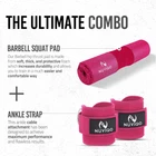 Enhance your weightlifting routine with our Barbell Pad & Ankle Strap Set for Cable Machine Workouts! This premium gym accessory bundle includes a barbell pad and an adjustable ankle strap, perfect for women looking to elevate their gym sessions. ELEVATE YOUR WORKOUT - Ready to take your weightlifting and strength training to the next level? Look no further than NUVIQO’s bar padding for hip thrusts and ankle straps set! Made to meet the highest standards of quality, our set is the optimal choice for dedicated fitness enthusiasts who demand the best. HEAVY DUTY CONSTRUCTION - Our squat bar pad is crafted with high-density foam, built-in straps, and silicon grippers which provides a better grip than conventional straps. The breathable nylon cover makes it easy to dry the Barbell pad after a sweaty workout session. VERSATILE ANKLE STRAPS - Our ankle cable attachments for gym feature rust-free stainless steel Double D-Rings which provides a reliable fastening system for safety. The adjustable strap ensures a secure fit for any ankle size, providing maximum comfort during exercises such as glute kickbacks and leg curls. ULTIMATE COMFORT - By reducing discomfort and providing extra support during exercises, such as squats, lunges and hip abductions our hip thrust pad and cushioned ankle cuffs can help you maintain proper form and technique, leading to better results. GREAT GIFT IDEA - Our barbell pad and ankle strap set make a thoughtful gift for any fitness enthusiast in your life, whether they're just starting out or are already an experienced weightlifter.