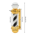 Barber Pole Light,Black,White,Gold Rotating Hair Salon Open Sign,IP54 Waterproof Description~ Barber Pole Light, Black, White, Gold Rotating Hair Salon Open Sign, IP54 Waterproof, Save Energy, Wall Mount. Description Choose this barber pole light and you can attract lots of customers because of the exquisite appearance and the clear and bright light, which is classic and fashionable. The high-quality materials will let you feel free to use this item. Besides, the LED light source is very energy-saving and environmentally friendly. It will be a good helper in your work. Specification Color: Black, White, Gold Outside Cylinder Material: PC Base Material: Plastic Process: Gilding Process Installation Type: Wall Mount Style: Modern Power Source: Plug-in Electric Plug Type: US Standard Bulb Light Source: LED Switch Type: SAA-201828-EA OJ-328 3X 1A /250V-1E4 Product Height: 68cm/ 26.77 inches Rotating Part Length: 27cm/ 10.63 inches Top Diameter: 14cm/ 5.51 inches Power Cord Length: About 1.2m/ 3.94ft Plug Type: US Standard Voltage: 110V, 50/60Hz Speed: 50rpm Rotating Lamp Wattage: 18 Watts Net Weight: 2 kg/ 4.41 lbs Gross Weight: 2.56kg/5.64 lbs Package Included 1*Barber Pole Light 1*English Instruction Other Accessories for Assembly Key Features Build to Last: The high-quality PC and plastic, as well as the exquisite gold plating process, make this product beautiful, durable, and can maintain good aesthetics and practicality indoors and outdoors. High Safety: The excellent waterproof performance makes this product well resistant to harsh weather such as rain, snow, and dust to ensure safety. Therefore, you can use it with confidence. Excellent Light Source: The product adopts an LED light bar, which has a longer lifespan, high energy conversion efficiency, and higher energy utilization efficiency. Besides, it produces less UV radiation, reducing pollution to the environment. Luxurious and Noble Look: The combination of black, white and gold tones gives the product a sense of luxury and fashion, which is the secret to attracting customers, and is also a beautiful sight in the night! Easy to Assemble: The simple structure, a clear arrow marking, and a detailed manual let you install it quickly without complicated steps. Space-saving: This product is wall-mounted and does not take up floor space, which is very space-saving. Ideal Gift: With its excellent performance, this product is an ideal gift for family, friends, and loved ones who operate a barber shop, attracting more customers for them. Protective Packaging: The foam can better protect your product during transportation and make it delivered to you completely to the greatest extent. Details Bottom Water Leaks: The design of water leaks on the bottom can prevent it from rain and storms. Independent Switch: With two on/off buttons, you can turn on and off the rotating and lights individually, which is convenient for you to operate flexibly during hairdressing. Long Power Cord: The 3.94ft power cord reduces usage restrictions and further ensures your safety. Application The item can be used not only in hair salons, beauty parlors, bars, and building street lights but also as store signage and it's universal for both indoor and outdoor use. How to Install Place the bolts on the mounting bracket. Drill self-tapping screws into the plastic rubber particles to install the upper and lower fixed bracket. Align the bolt with the reserved hole on the barber pole, tighten the nut and the installation of the barber pole is complete. Notes Please read the instruction carefully before use and pay attention to the safety precautions mentioned therein. When used indoors, the motor emits a low-frequency sound, which is normal. When used outdoors, condensation is a natural phenomenon that will evaporate normally without affecting its use. Please allow the slight color difference caused by the shooting light and the 1-3cm error due to manual measurement. Please make sure you do not mind before you order. Payment Delivery details Terms of sales About us Contact us Payment We accept ebay payment 。 Fees such as import duties, taxes are not included in the item price or shipping costs. These charges are the buyer's responsibility. Delivery details Shipping: 2-9 working days to: USA Terms of sales We maintain high standards of excellence and strive for hundred percent customer satisfaction. Feedback is very important to us. We hope that you contact us immediately before you give neutral or negative feedback, so that we can address your concerns. It is impossible to address issues if we do not know about them! About us Your satis faction is our ultimate goal. We work hard to earn your trust and future business. Our certified technicians have tested each item before shipping. The unit comes with 1 year limited warranty on all manufacturing defects. a) If you receive a defective item, you may return it or ask for a discount. Please contact us within 14 days after you receive the package. b) What you returned must be intact and in its original packaging as re? u. Customer is responsible for shipping costs of the returned item. c) We will cover the cost of shipping back t with the shipping rate indicated in the registration page. We will send you a new unit or refund the full payment you paid. Thank you. Contact us Business Hour Business Hour: Monday To Friday: 8:30 AM to 5:00 PM (Beijing China time) Due to time zones, our reply to your questions may not be immediately. But within above working time, we will reply your email within 24 hours. If it's non-workdays, please kindly be patient and wait till Monday. Please contact us with ebay message. Please feel free to contact us if you have any questions. Monday To Friday: 8:30 AM to 5:00 PM (Beijing China time) Due to time zones, our reply to your questions may not be immediately. But within above working time, we will reply your email within 24 hours. If it's non-workdays, please kindly be patient and wait till Mond