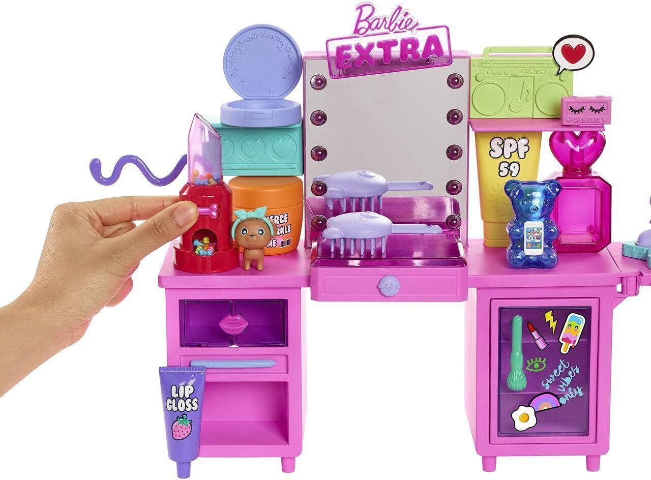 Barbie Extra Doll & Vanity Playset with Exclusive Doll, Pet Puppy, 45+ Pieces Including Clothes & Accessories, Toy Gift for Kids 3Y+, GYJ70