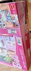 See photos. TEAR at top of box and DENT at bottom of box. Product never used. No items removed from box. This is bright pink Barbie doll refrigerator with double doors . The packaging artwork shows Barbie opening the fridge and holding a carton of milk. Inside the illustrated fridge are miniature food items and shelves for pretend play. The design has a modern look with silver handles and fun kitchen details, making it a colorful accessory for Barbie dollhouse or kitchen play.