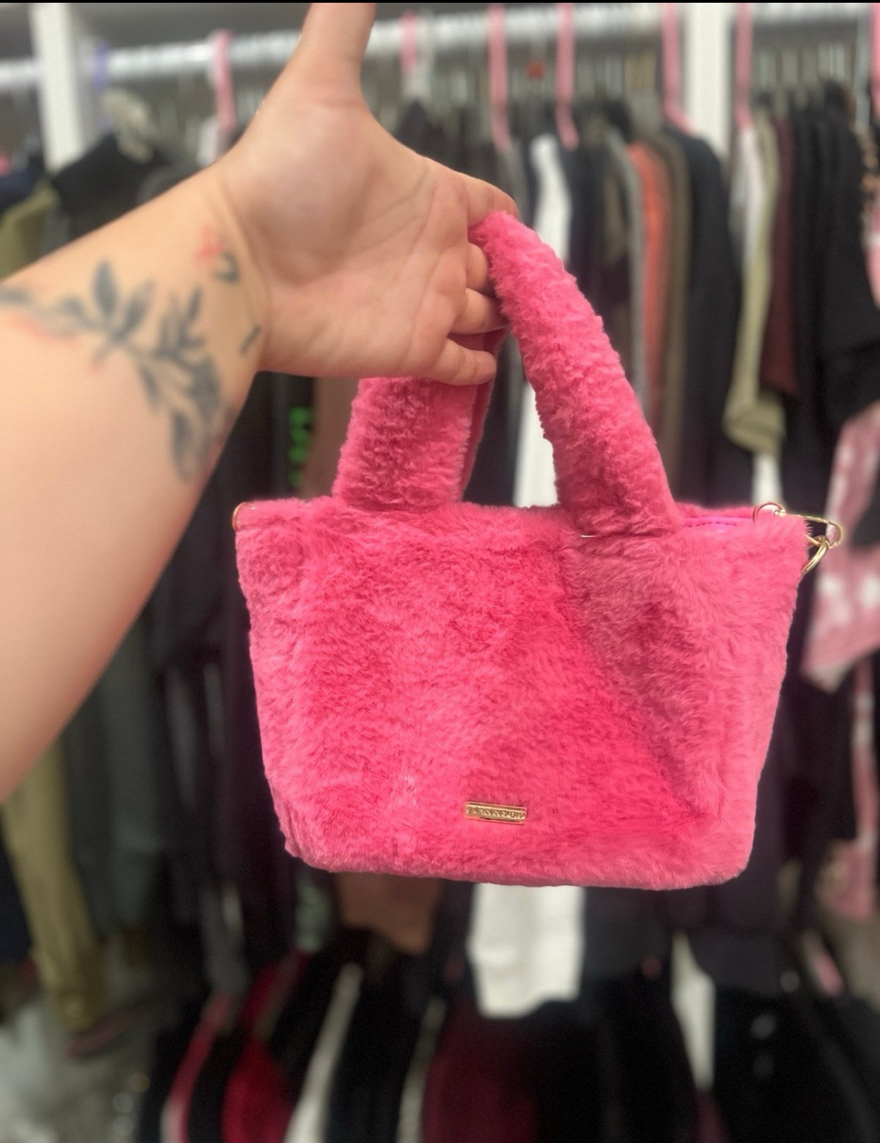 Elevate your accessory game with the Barbie x Skinny Dip London Fluffy Mini Tote Bag. A hot pink faux fur exterior exudes luxury and fun, perfectly in line with the playful spirit of Barbie. The tote is thoughtfully designed with a practical snap closure and chic gold handle/strap details that complement its vibrant exterior. The bag's compact 10-inch width makes it a charming addition for casual outings, ensuring you carry your essentials in style without the bulk. Its limited edition status adds a touch of exclusivity to your collection. Whether you're a fan of London-themed delights or looking to make a bold fashion statement, this tote is a splendid pick for both.