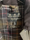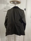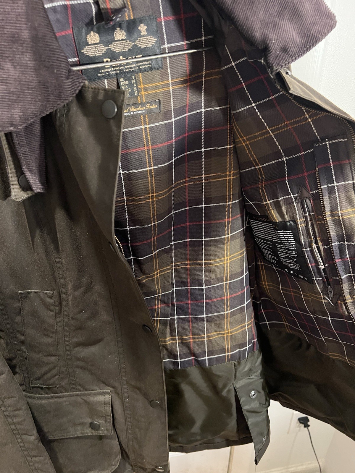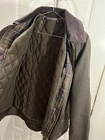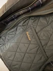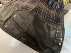 This Barbour women’s jacket is in perfect condition, there is no flaws whatsoever. No wear around the corduroy collar, no stitching tearing, scratches or marks. Is in a classic Olive color with a tartan interior. Based on the classic Bedale but this jacket has a feminine silhouette and multi pockets and a button flap rear. The jacket in this size is sold out on the Barbour website. Also comes with a removable insulating zip in lining. This liner was an extra cost. Length-28in Size US4 Euro 34 UK8 The original tartan coat by appt to her majesty the Queen of England Jacket is made in England Labeled on jacket tag. Jacket retails $400
