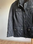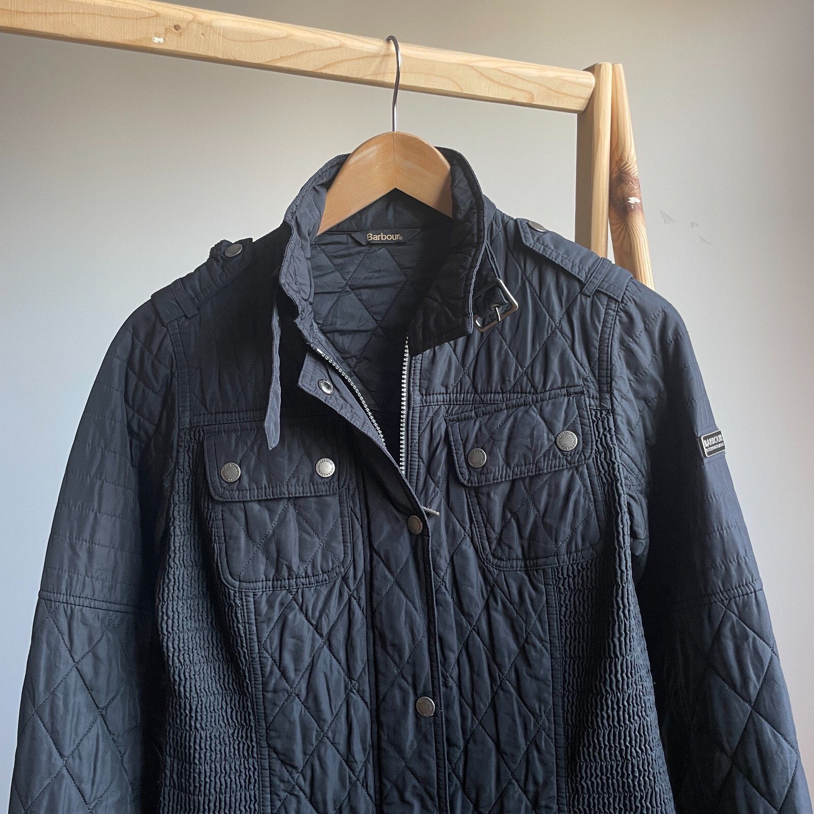 Barbour International Womens Fireblade Ribbed Quilted Jacket The jacket has damages from iron on back, check please photos Size US 6/ UK 10/ EU 36 Measures: Shoulders 36 cm/ 14.1 in Pit to pit 45 cm/ 17.7 in Sleeve from shoulder 60 cm/ 23.6 in Length in back 65 cm/ 25.5 in + collar All items are measured laying flat